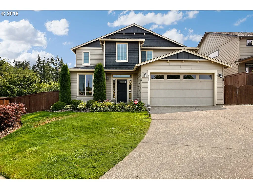 Green Gables Neighborhood in Ridgefield. Great rm concept w/island/eat bar kitchen, abundance of cabinetry, island w/prep sink,pantry,recessed light, lam flr. Dining w/slider to covered patio. Fam rm w/gas FP, lam flr. Master en-suite on main w/WI closet, dual sink vanity, soak tub, sep dual head shower, slider to covered patio. Addtl bdrm suite w/combo soak tub&shower. Bonus rm/5th bd w/closet. Laundry on main. Landscaped w/sprinklers.