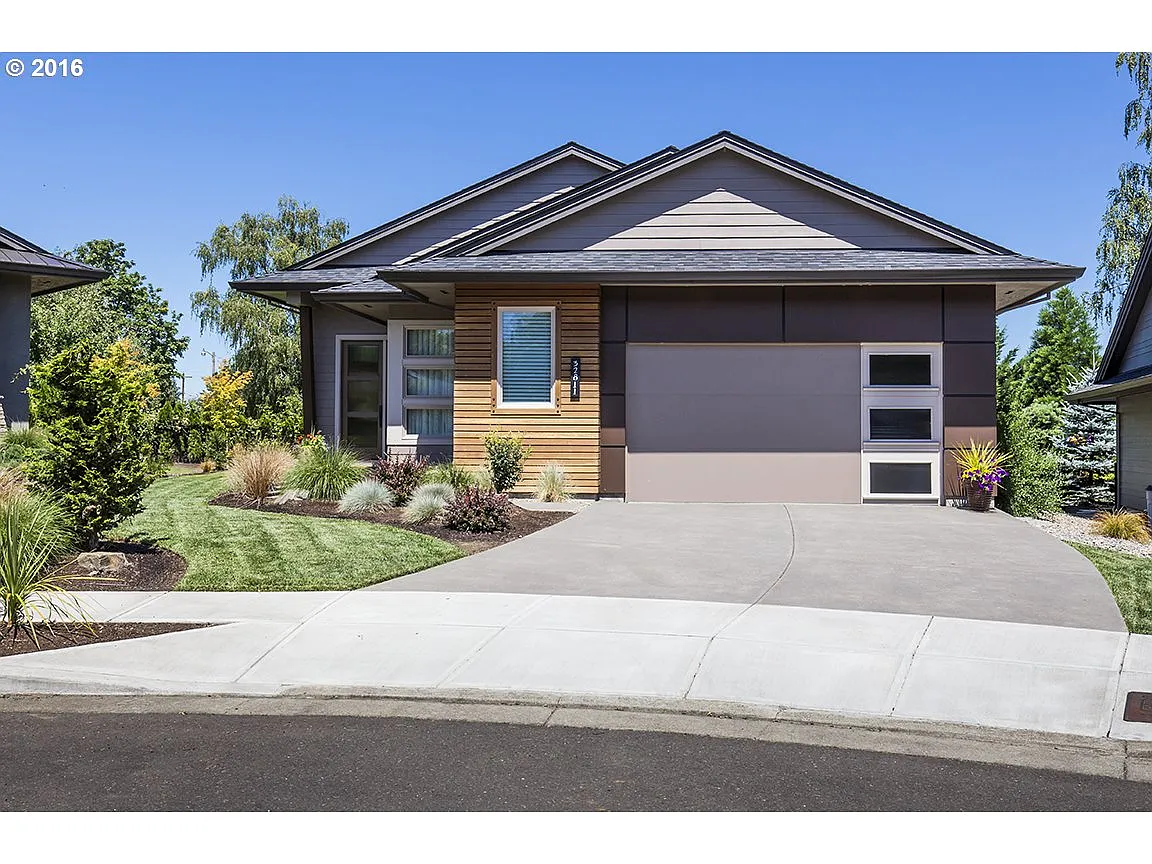 This stunning custom home exudes style and comfort! The great room design flows easily and offers a kitchen ideal for entertaining with quartz counters, stainless appliances, custom detail and a large pantry. The wood floors, high ceilings, and a bright wall of windows with custom window treatments adds to the style. The sliding barn doors leading to the den and the gas fireplace are beautiful focal points. Located on a .26 acre lot with a covered deck, sprinkler system, gas BBQ hookup and tastefully landscaped in a neighborhood of custom homes built by Rick Waters Construction. You will feel the quality inside and out of this beautiful home.