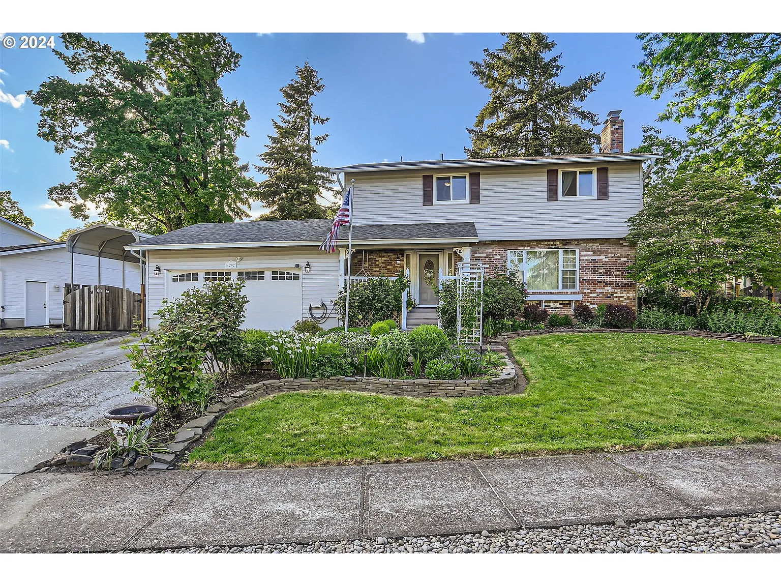 This charming West Linn home sits on a quarter acre lot and is filled with character and one-of-a-kind touches including gorgeous crown molding, detailed wainscoting, box beams and hammered tin. Surrounded by the most exquisite landscaping designed by a Master Gardener with pathways winding through flower-covered archways, spring/summer blooming perennials, 20+ varieties of roses, raised beds and rustic garden shed. As you step inside, you'll be greeted by a spacious light-filled living room with sunny windows and beautiful fireplace. The tastefully updated kitchen boasts stainless steel appliances, Corian countertops and a gas range. The adjoining family room has beadboard accents, a huge bay window, cozy wood stove and is connected to a large storage room. French doors from the eating nook and dining room lead to the wisteria-covered patio, a wonderful extension of the home and idyllic setting for outdoor entertaining. This 3 bedroom, 2.5 bath home has hardwood and tile floors throughout the main level and a functional layout allowing for separate gathering spaces. Upstairs you'll find a spacious primary suite with a wood-burning fireplace and walk in closet. There are 2 additional bedrooms and a full bathroom with the coolest vintage dresser-vanity. Other amenities include A/C, Nest thermostat, RV/boat parking, sprinkler system and fully fenced backyard. Fantastic location near Market of Choice, Starbucks and shopping. Just one mile from West Linn High School and easy access to the freeway. Experience all this amazing community has to offer with its nature trails, rivers, parks, boat docks, sports fields and highly rated school district. Stroll through nearby Historic Willamette with its quaint shops, farmers market, restaurants and food carts. Short drive to The Oregon Golf Club. No HOA. Incredible value! Open House Saturday, May 18th 11:00-2:00.