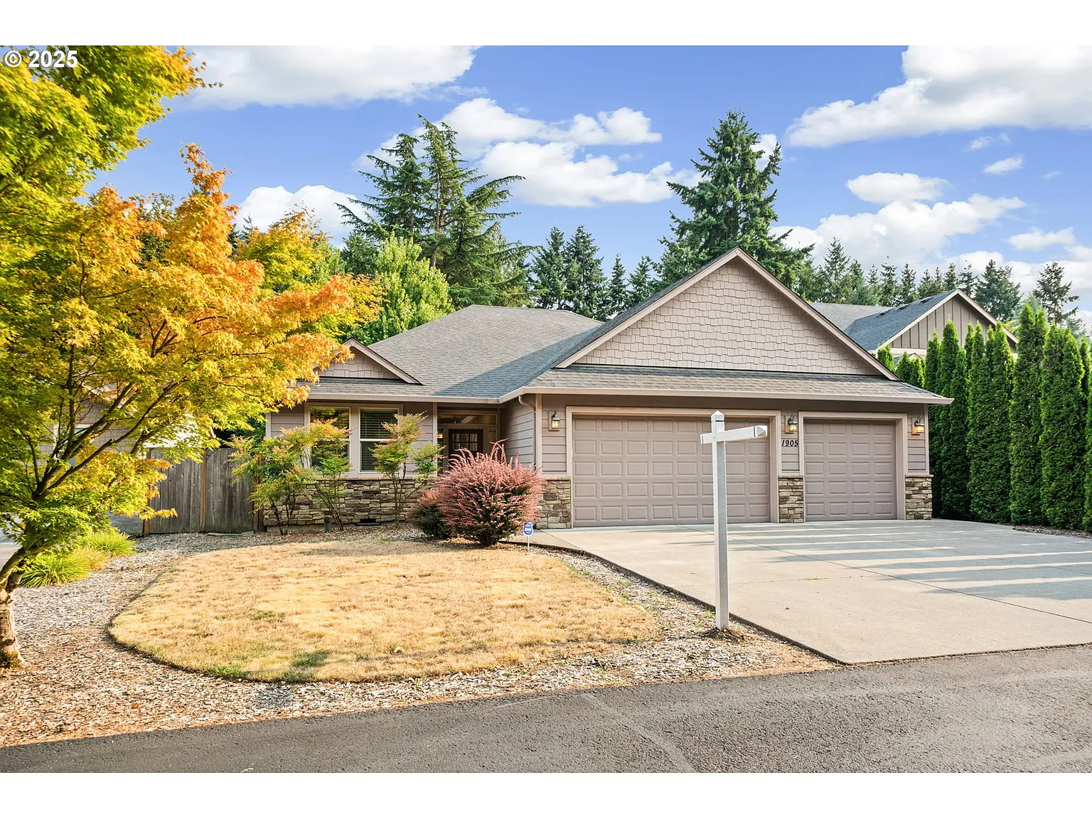 Tucked into a quiet, tree-lined cul-de-sac in sought-after Felida, this one-owner single-level home offers the perfect blend of comfort, elegance, and practicality. With extra wide hallways for easy mobility, fresh interior paint, brand new carpets, and zoned irrigation front and back, it’s move-in ready and thoughtfully maintained. The open-concept living room features a gas fireplace with stunning built-ins, floor outlets for smart design, and flows into a chef’s kitchen with high-end granite, massive eat in bar, 5 burner gas cooktop, built-in oven and microwave, and formal dining with arched entry and crisp wainscoting. A double-door glass executive office boasts floor-to-ceiling stunning wood built-ins, while the primary suite shines with a massive soaking tub, walk-in tile shower with mud set floor and bench, and real wood closet built-ins with space for your entire wardrobe. Enjoy privacy with no rear neighbor views, a cedar-lined covered patio with gas BBQ hookup, and extended concrete patio perfect for entertaining or fire pit evenings. A full laundry room with sink, washer/dryer, and mudroom access to a 3-car garage adds convenience, all within a small, private community surrounded by parks, trails, and top amenities—where single-level homes continue to hold their value and build long-term equity. Newer hot water heater. Low traffic home, must see.