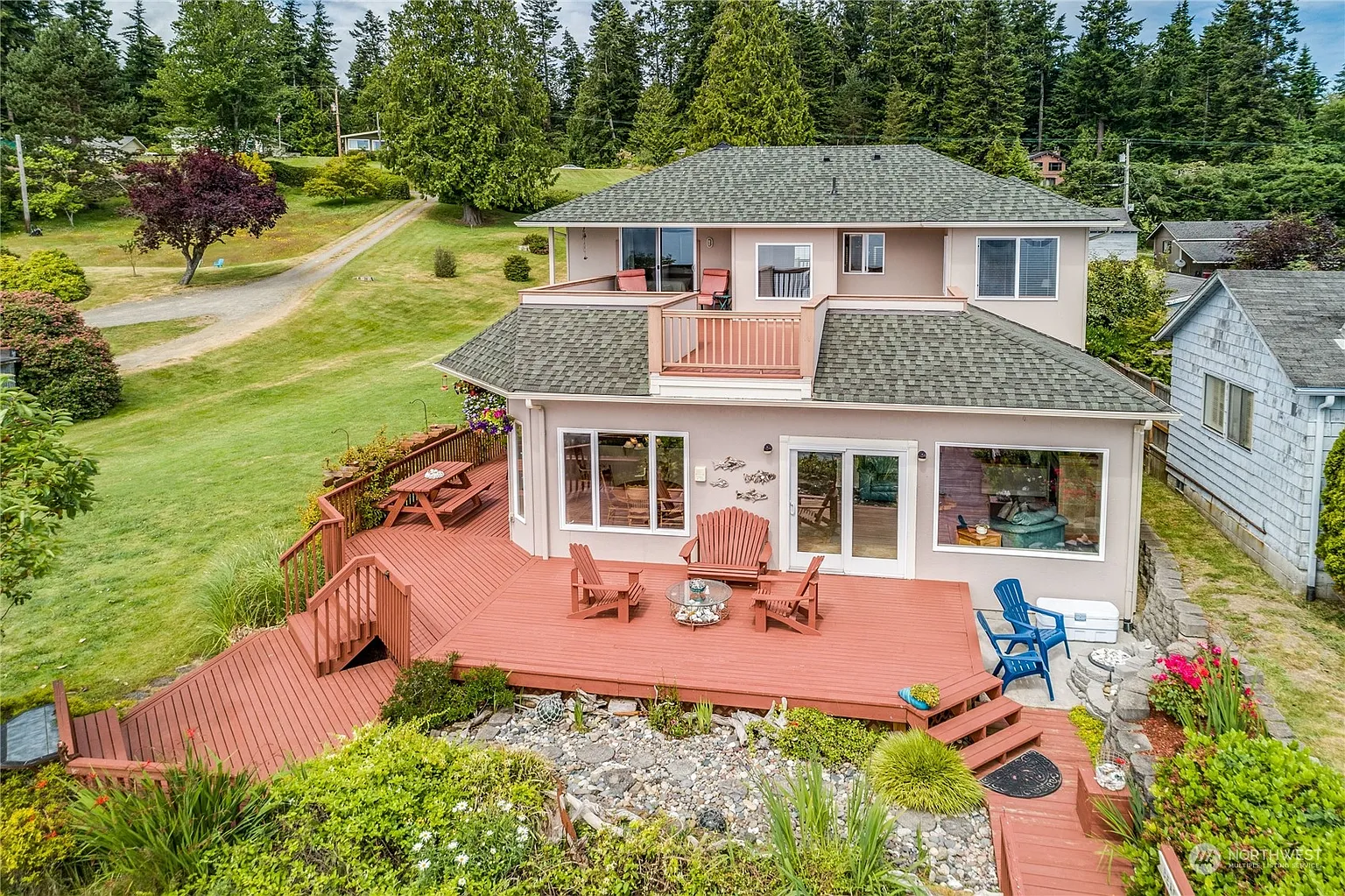 Your once in a lifetime opportunity to own a waterfront home with amazing views and easy stairs to a sand and pebble beach! Pride of ownership shows in this immaculately cared for home, both inside and out! The flexible floor plan offers two primary suites, one on the main level. The oversized two-car garage offers enough space for a workshop or a small car. In excellent condition, the sellers recognize that you might want to update the current finishes and are offering a $35000 allowance at close. Discover why this area is one of Port Ludlow's most sought after communities - great natural light, huge views, wonderful neighbors and a walking beach that is one of the best in the area. Close to shopping, medical and a boat launch nearby.