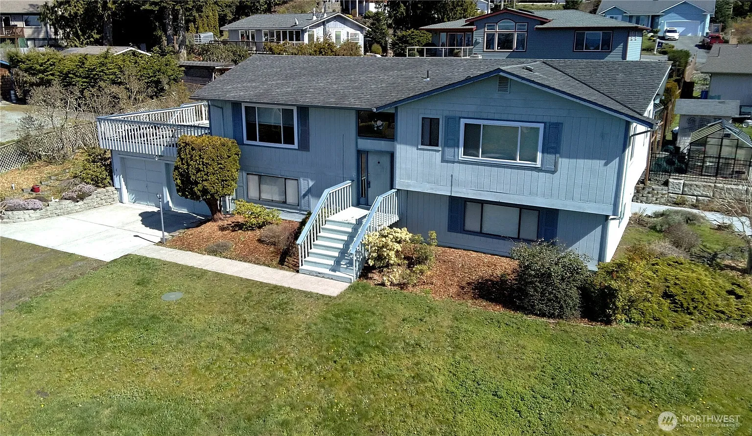 Enjoy amazing water views of the Olympic Mountains, Discovery Bay, Protection Island and San Juan Islands from this spacious 2,421 sq ft, 2-story home nestled on a generous 0.39-acre lot in the Cape George Colony community. Featuring 3 bedrooms and 2.75 baths, this thoughtfully designed home offers plenty of space to relax, entertain, or work from home. Upon entering, you’re welcomed by a split staircase that leads into an open living room filled with natural light. The upper level hosts the main living areas, including the kitchen and a primary bedroom with en suite bath—perfectly positioned for comfort and privacy. The lower level expands your options with a spacious family room, an additional bedroom and ¾ bath, and a dedicated office or library—perfect for remote work, guests, or multi-generational living. Complete with a detached garage, paved RV parking with hookup, and a generator plug-in, this home is as functional as it is beautiful. Residents of Cape George Colony enjoy exceptional amenities, including an indoor swimming pool, clubhouse, wood shop, marina, and pickleball court—offering a vibrant lifestyle just moments from your door.