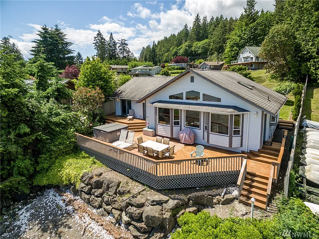 Amazing waterfront dream home! Oyster-laden 60' of tidelands with low bank beach on Hood Canal. Rambler with highly desired open floor plan, 2 bedrooms + den with 2.25 bathrooms. Expansive deck with Jacuzzi + incredible sunrise view. Rare separation from HWY 101, oversized 2-car garage + workshop. Established vacation rental collecting $30K+ a year on average! All Furnishings included! A true gem in Triton Cove on the shores of Hood Canal, come see it today! Showings by appointment only please.