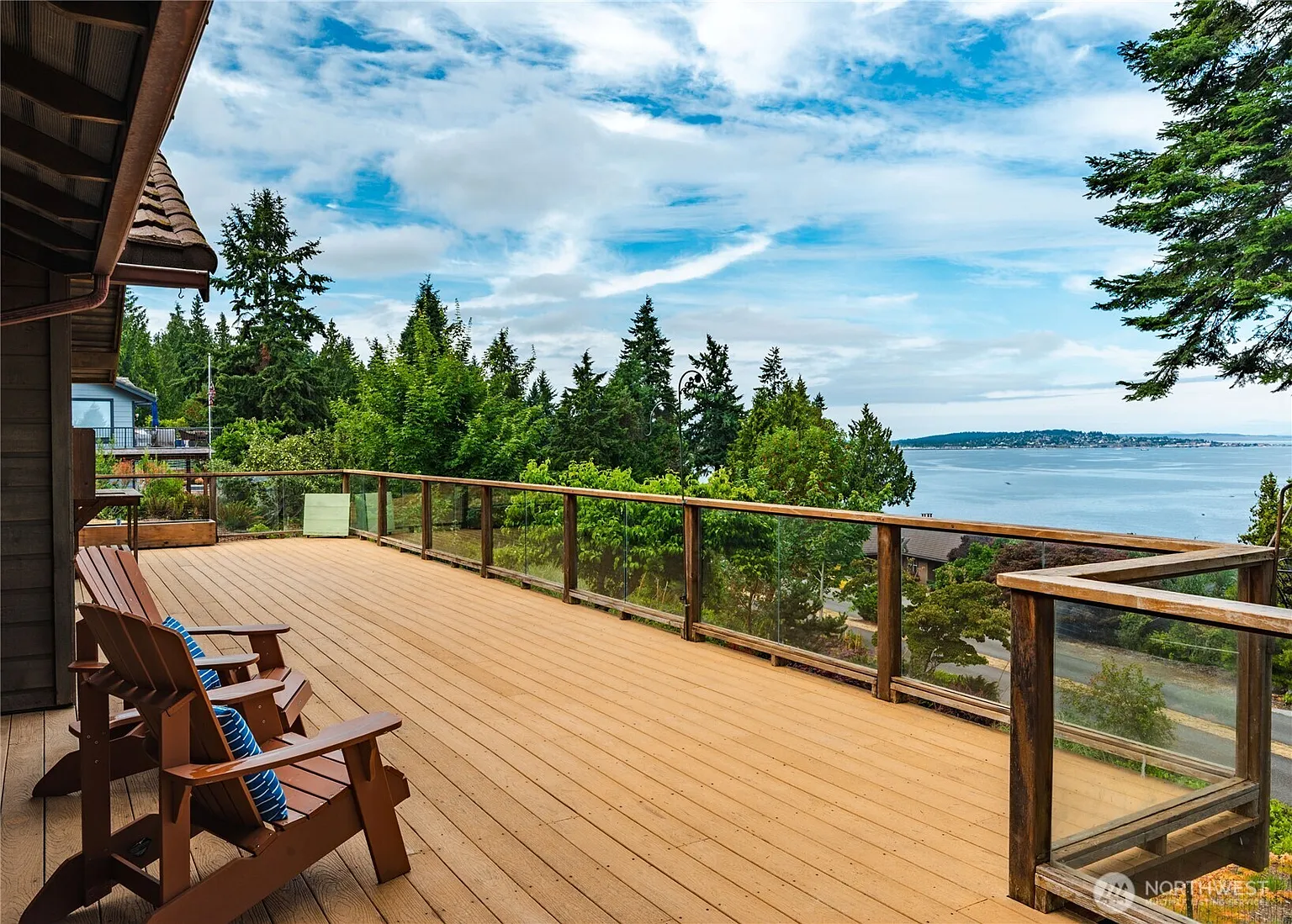 Bask in the timeless beauty of the PNW when you step into this lovely 2+ bed/2.25 bath home. Expansive views of the Salish Sea & Cascade Mountains greet you from almost every turn. Entertaining is a dream on the spacious deck & open concept floor plan. Main level primary w/ remodeled ensuite make single-level living easy. Downstairs, you'll find a separate entrance w/ 2nd bedroom, bonus room, office & full bath- offering endless flexibility or ADU potential. Thoughtful updates & room to make it your own. Attached, oversized garage. Just shy of 3/4 acre w/ low-maintenance landscaping & winding garden paths. Desirable Kala Point amenities: private beach, trails, pickleball courts, pool & more. Truly, it doesn't get much better than this!