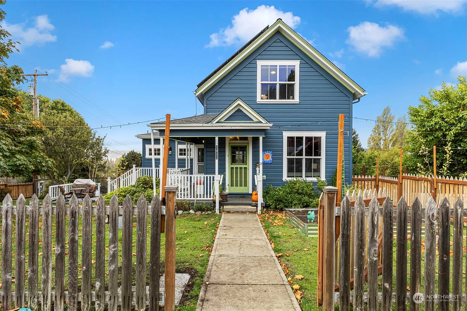 Beautiful Uptown Victorian home on a double city lot w/ views of the Bay, Olympic Mountains & Kah Tai Lagoon! Recently installed Solar Panels for low power bills. New free standing propane stove keeps the house warm & cozy. Fir floors throughout, wrap-around front porch & SW facing deck overlooking the gardens & fully fenced yard. Main level features an office that could be the Primary bdrm or 3rd bdrm. Updated windows, plumbing, electric, heating & insulation while maintaining the home's character. Even a clawfoot tub in main fl bathroom. Unfinished basement serves as storage, but is the perfect workshop. Situated on a corner lot w/ a magnificent Heritage tree in the front, this home represents everything we love about Port Townsend!