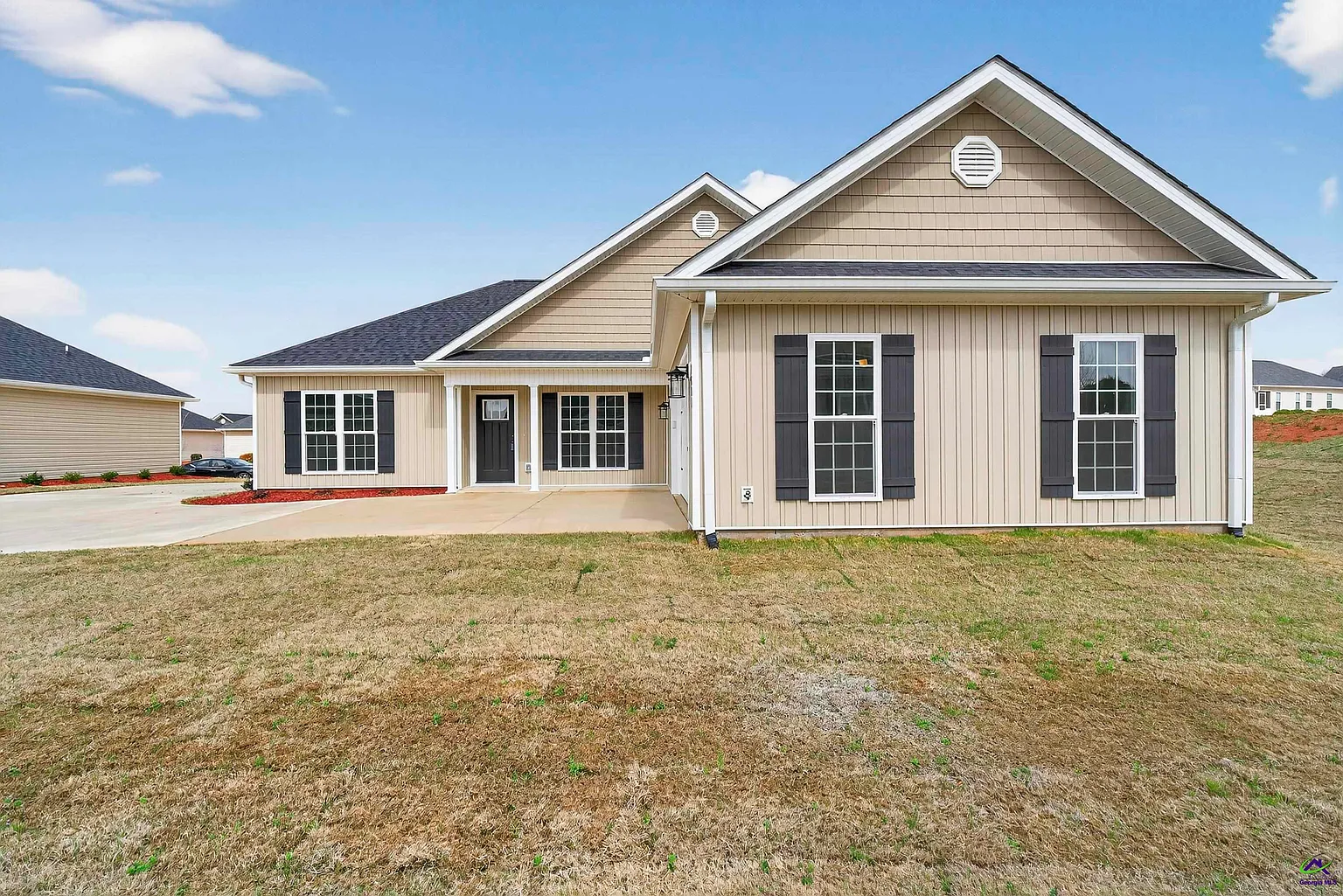 Move in Ready! New Construction in Gated 55+ Community! This 2-bedroom, 2-bath home offers 1,357 sq ft of thoughtfully designed living space in a gated community featuring a pool, exercise room, and clubhouse. Enjoy an open-concept layout with a separate formal dining area, breakfast bar, and breakfast room. Covered front and back porches provide perfect outdoor living spaces. Interior highlights include luxury vinyl plank flooring in main areas and bedrooms, tile in bathrooms, and custom wood cabinets with granite countertops throughout. The kitchen features a stylish tile backsplash. Listing agent is related to the seller and is a licensed real estate associate broker in the state of GA.