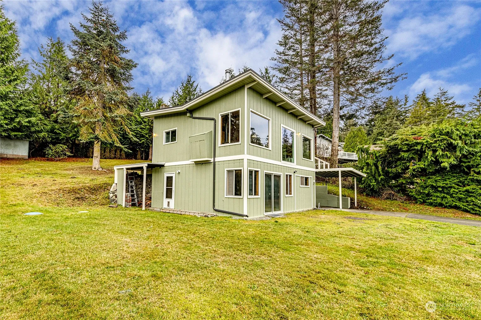 Spectacular panoramic water views of the Strait of Juan de Fuca, Protection Island & Mount Baker at unbelievable affordability! 2-bd, 2-ba home on quiet cul-de-sac has a main floor open layout w/ sweeping views from new 2024 large picture window & sliding glass doors. This property offers possibilities not only as a home but as a 2-unit rental or MIL apt downstairs. 2024 renovated deck & railings faces stunning waterfront views. 2024 upgrades include: new roof, wall heaters, electrical panel, exterior paint, water heater & more. Original flooring removed (no pets!) and a $10k flooring credit at closing. Tall trees rim the backyard with buffered privacy. Beach access & boat ramp nearby. Septic System inspected. Taxes $2289 annually.