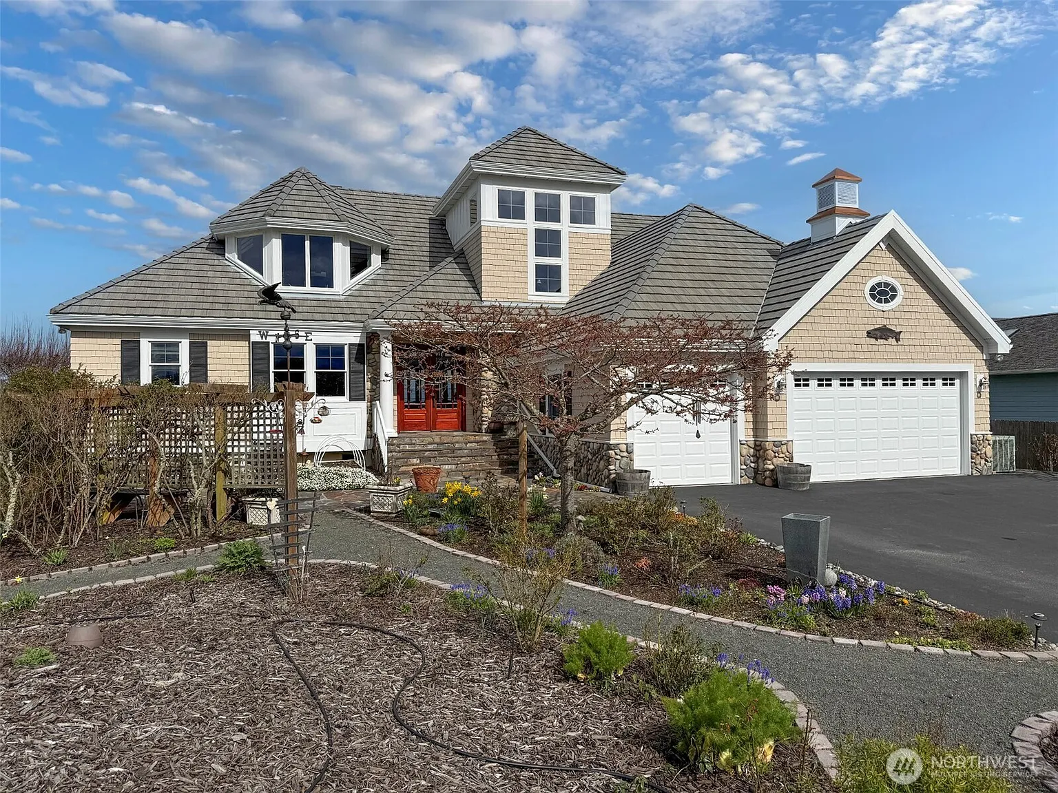 Set directly on the beach along Dungeness Bay, this front-row waterfront home is widely described as one of the most exceptional properties and locations in Sequim. The setting is profoundly tranquil, with unobstructed water and mountain views that span the Bay, Strait of Juan De Fuca, the Olympics, the Cascades, Mount Baker, The San Juan's, British Columbia, and the Dungeness Lighthouse, creating a backdrop that feels both expansive and serene. Located within a private residential enclave of just 14 homes and more than a mile from the nearest county road, the property offers rare seclusion and quiet, broken only by waves, wildlife, and the rhythm of the tide. An irreplaceable coastal retreat defined by privacy, natural beauty, and timeless appeal. Immediate access to crabbing, fishing, & kayaking right from your doorstep. This Robert A.M. Stern inspired home has soaring 20 foot ceilings, Huge open floor plan, impressive floor to ceiling windows with French doors that open to a spacious deck, Luxurious Chefs Kitchen, Interior Greenhouse, 3 Car Garage, Primary and Junior Guest Suites, with office/den on the main floor. Only 2 hours from Edmonds and Seattle.