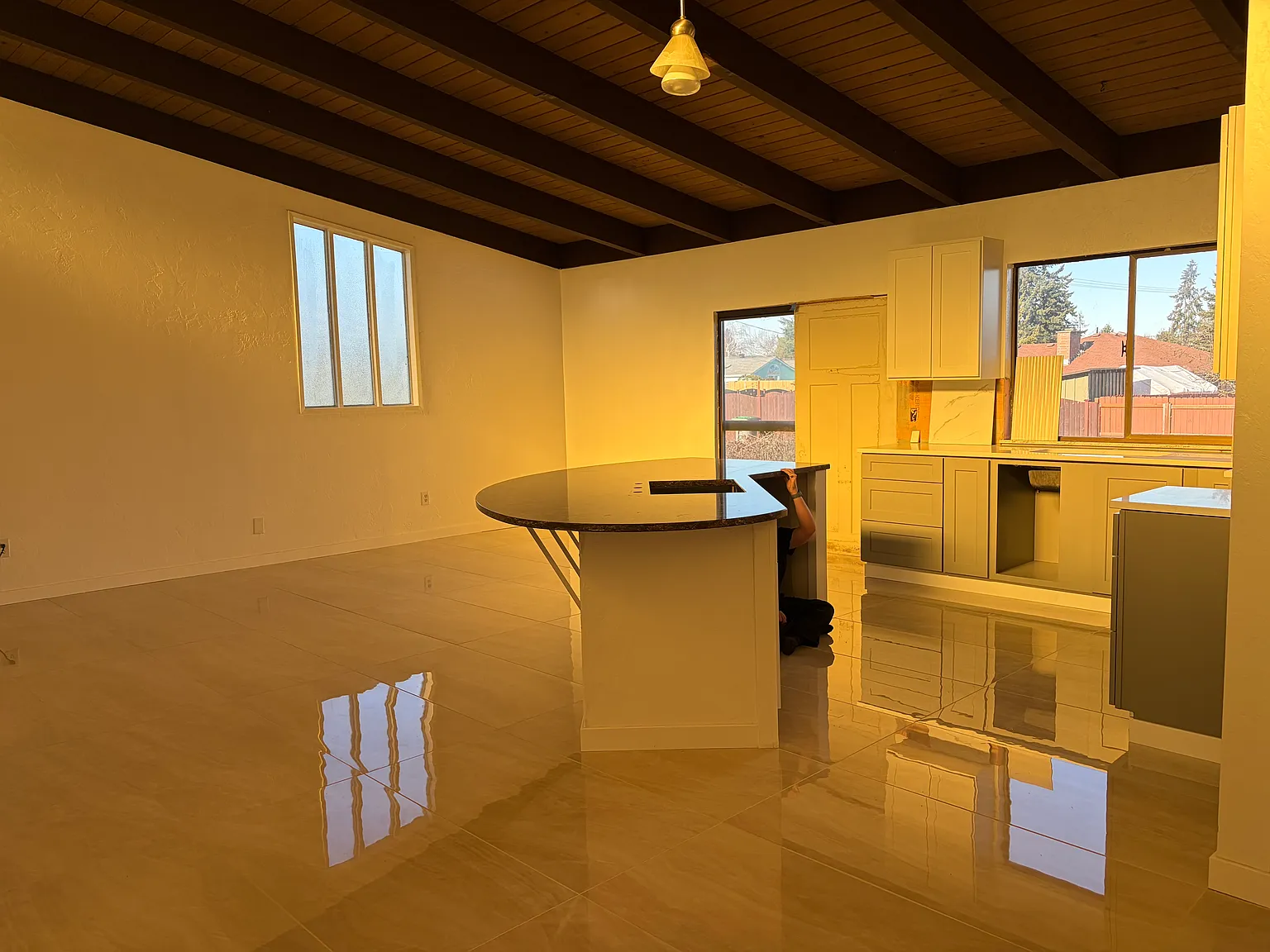 New roof. New flooring, New cabinets, New tiled showers. Beautiful new Kitchen with huge Granite Island with eating bar. Sunlight fills the kitchen/living/dining room with southern clerestory windows. This home is cozy and lives large with the vaulted and exposed beam ceilings. Townhouse style. shared wall with neighbor.Possibility to rent entire property. Close to park. Minimal yard work. Street and alley parking. Walking distance to shopping, schools, and restaurants. New interior with fresh paint. Huge granite Island with eating bar. Large home with three bedrooms,2 baths. All utilities additional to rent. Walking distance to shopping, schools and restaurants. Neighborhood park just around the corner. Quiet street with good neighbors. Vaulted ceilings, exposed wood beams.
