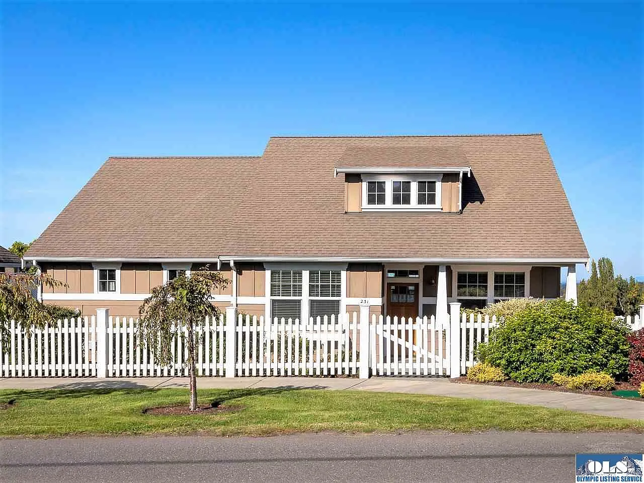 Panoramic water & Mount Baker view from this modern craftsman style home, situated on a double lot near Bell Hill. The perfect location just 1mile from downtown Sequim. Every detail in this home has been well cared for. Bamboo floors throughout, cozy propane fireplace, vaulted ceilings, huge deck for entertaining & relaxing. Tons of storage in the unfinished basement. The best part? The yard work is all taken care of by the HOA! Enjoy other amenities as well like the clubhouse & private dog-park
