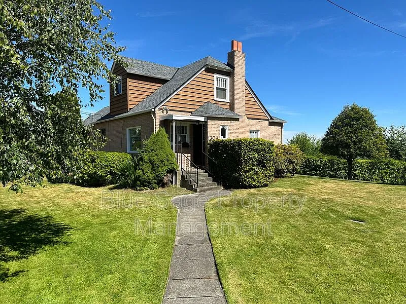 Here's a 2 story home with fabulous picture windows of the marina below. There are two living rooms - the original super cute one in front, and a spacious newer build closer to the detached 2 car garage. Original hardwood floors in most of the rooms. The family room has a very nice tile floor. As you walk into the front door, there are vintage touches in abundance, such as custom windows, mantel for the wood fireplace, archway between the living and dining room. There is a main floor bedroom and full bath. Upstairs has two bedrooms and another full bath that includes a jacuzzi tub and a separate shower. Two cautionary notes: the stairs to the 2nd floor are original and steeper than normal. The bluffs fall off very fast, and should not be traversed for your safety. Located in Port Angeles, close to the Olympic Medical Center, overlooking the Strait of Juan de Fuca. Owner pays for pruning. Comes with a newer refrigerator, stove and dishwasher. In the full, unfinished basement there are washer and dryer hookups. Picture is of the tenants' washer and dryer. Dogs will be considered on a case by case basis. Additional fees and deposit apply. The yard is not fenced. Application fee is $50 per adult. Leasing fee $135. We do NOT accept portable applications (something that is obtained outside of the company). A complete application means: you've seen the unit, submitted the application and paid the fee. NOTE: Blue Sage represents the owner. Please check our website for more information on approval criterion. We are looking for people with permanent employment (or retired), verifiable, combined, gross income of 3x rent or sufficient savings to live on, excellent credit, and landlord or mortgage history. Tenant required to have renter's insurance, which costs about $15-20 per month. We require first, last and deposit to move in. Deposit represents refundable security and last month's rent. Amenities: refrigerator, dishwasher, 2 car detached garage, washer/dryer hookups, Stove/Oven