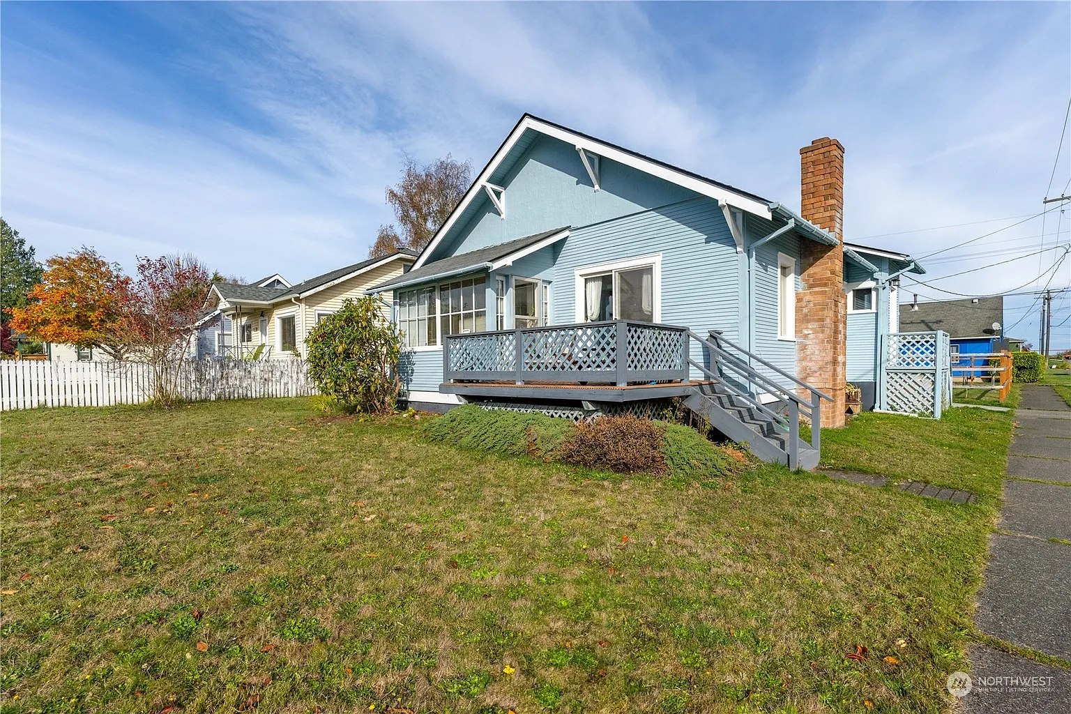 Charming 1927 Craftsman with peek-a-boo water and mountain views – full of possibilities! This two-bedroom, 1.75-bath home features a sunny south-facing sunroom and deck. The main floor offers two bedrooms, a spacious kitchen with ample storage, and a basement downstairs with a 3/4 bath and unfinished space brimming with potential. Outside, enjoy fresh paint, a partially finished wood fence, and garden beds. Additional storage is available with the one-car garage, and a new hot water heater has been installed. All appliances included.
