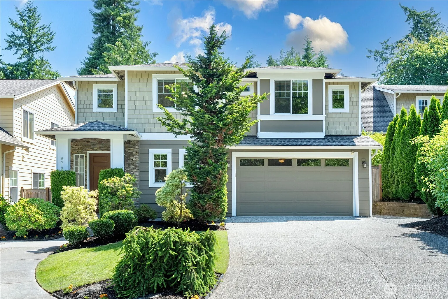 Enjoy convenient access from a quiet cul-de-sac setting. This HOA-free house includes 4 bedrooms, a large bonus room, a backyard patio, a bright den, a cozy fireplace, a granite kitchen, hardwood flooring, central AC, and a sprinkler system. Move-in ready with a new roof, new carpet, new water-heater, and new paint. Top-Rated Lake Washington School District. Walk to Costco, Safeway, Walgreens, parks, cafes, and more. Note: 0.25-acre lot includes protected wetlands across the driveway.