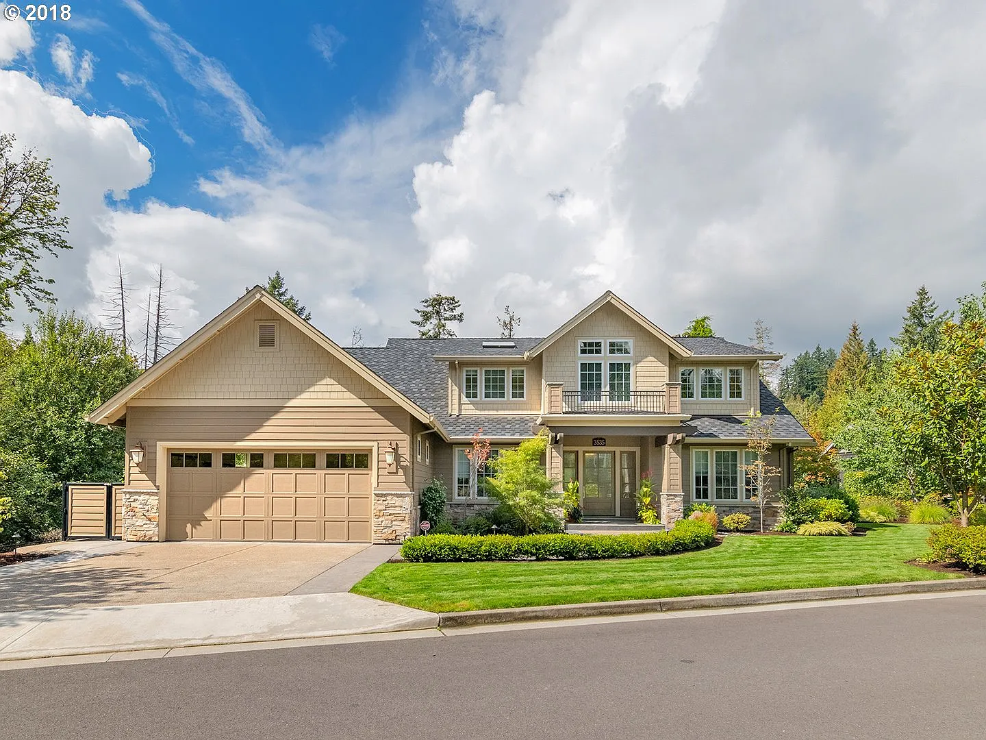 This custom built home by Shelburne Homes is the epitome of modern luxury living.Tranquil setting backing to green space on a cul de sac.Soaring ceilings,open living spaces a master suite on the main level. Sophisticated, cozy study with built in desk and bookcases.Private driveway access to finished, heated garage with RaceDeck floors,parking for 7 cars