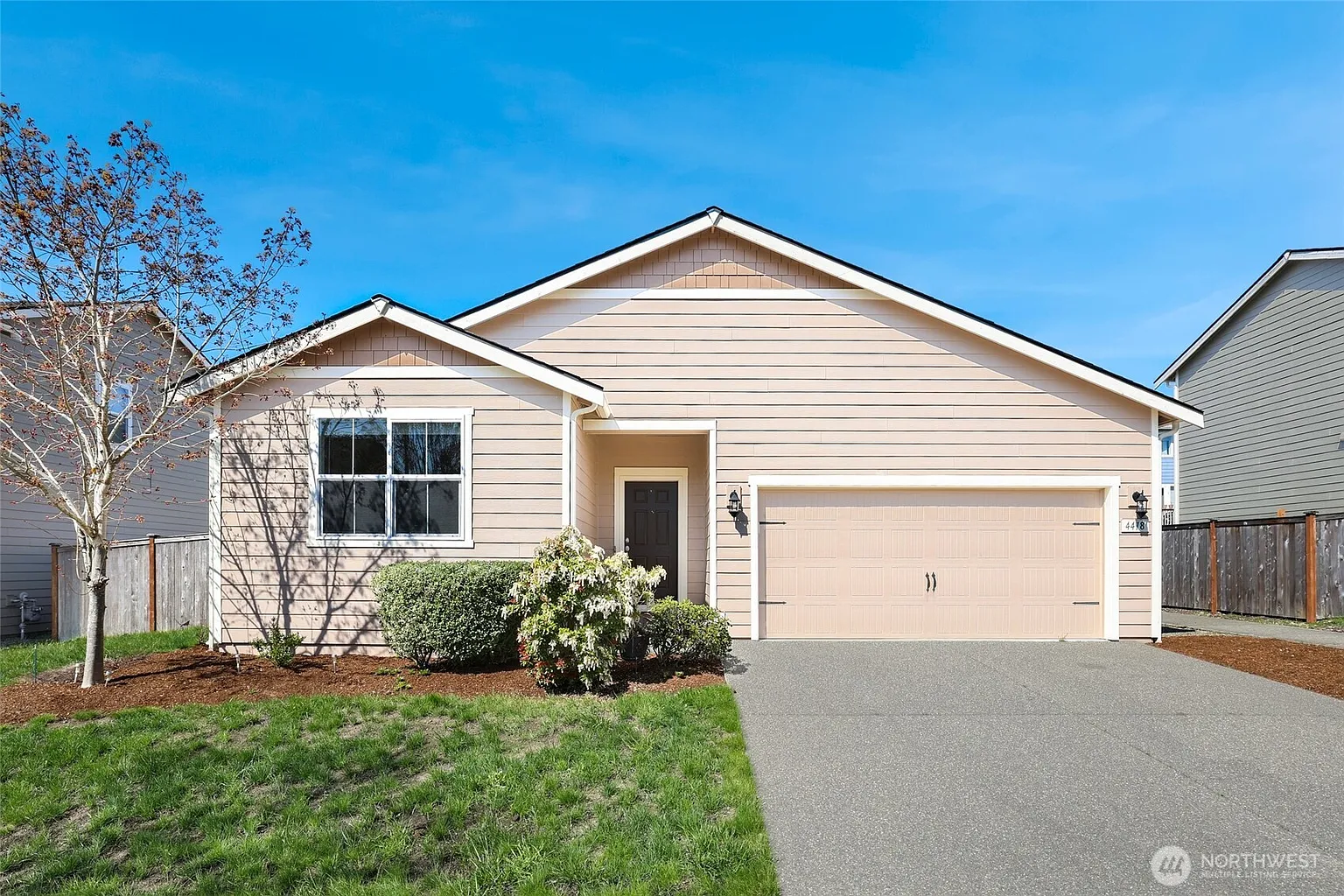 Welcome to this beautifully maintained 3-bed, 2-bath one story home in NW Olympia! This inviting home offers a spacious open-concept layout, featuring soaring 9-foot ceilings, granite countertops, stainless steel appliances, & a convenient laundry/mud room just off the attached 2-car garage. The generous primary suite includes a large walk-in closet & a luxurious 4-piece en-suite bath. Step outside to enjoy the private, landscaped backyard—perfect for entertaining with its expansive patio, terraced garden beds, & a dry well for efficient irrigation. Ideally located near parks, playfields, and scenic trails, with easy access to shopping, dining, and the freeway. Don’t miss the chance to make this charming home yours—schedule your tour today!