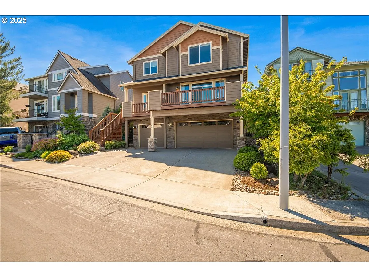 This exceptional three-story home is thoughtfully positioned to capture breathtaking views of Mt. Hood. The main level features a desirable great room concept with engineered hardwood floors, built-in cabinetry, and a cozy fireplace—plus a front porch where you can relax and soak in the scenery. The kitchen is a true showstopper, boasting granite countertops, a commercial-grade 6-burner gas range with griddle, and a spacious layout perfect for entertaining. Just off the kitchen, double glass doors lead to a versatile flex space—ideal for a den, office, or playroom. Step outside to your private backyard retreat complete with an outdoor kitchen and inviting seating area, hot tub pre-wire available. Upstairs, the primary suite offers a peaceful escape with a walk-in shower and a generous walk-in closet. 4th room upstairs could be converted to 4th bedroom. With a versatile floor plan, abundant natural light, and spaces designed for both hosting and unwinding, this home has it all. Lastly, an oversized 3 car garage for all your vehicles and toys! Come check it out!