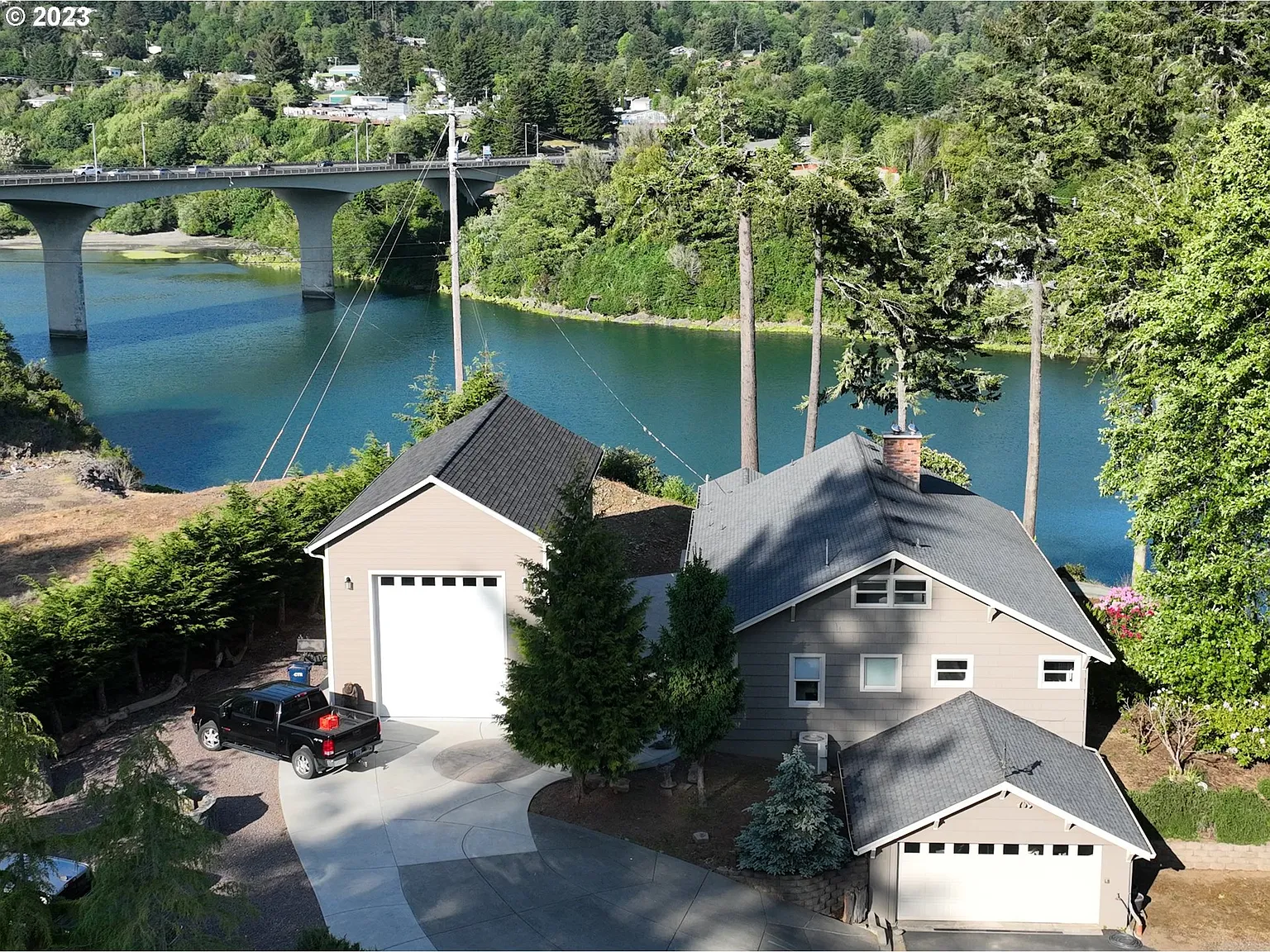 Chetco River waterfront spectacular home is a remarkable property in a prime location, offering breathtaking views of the ocean, river, bridge, Port of Brookings, boat basin, and the constant activity of boats coming in and out of the estuary. The house provides an ideal vantage point for observing the natural beauty and wildlife of the area.From this front-row seat, you can witness an array of marine life and wildlife, including schools of fish, seagulls, pelicans, seals, otters, sea birds, osprey nests, eagles, and even deer. This exceptional home has been lovingly remodeled and restored, ensuring high-quality living spaces. The kitchen, dining room, and living room benefit from incredible water views, creating a serene and inspiring atmosphere for everyday life or entertaining guests.The main level features two primary suites, including the primary suite and a second primary suite, offering convenience and comfort. Upstairs, you will find two guest rooms, a full bath, and a spacious storage room to accommodate your belongings.The lower level of the house offers additional living space, including a family room, a bonus room, and media rooms. Extra rooms can also be utilized for storage or as guest quarters, complete with a separate entrance for privacy and convenience.The property includes a shop measuring 45 feet deep and approximately 20 feet wide, providing ample space for your RV, extra cars, various hobbies, or storage needs. Additionally, a three-car garage ensures plenty of room for vehicles and equipment.The home offers a private and serene setting on a generous .59-acre waterfront lot. The property is gated, adding an extra layer of security and exclusivity, and it is near downtown Brookings and local beaches. To fully appreciate the magnificence of this home, it is recommended to schedule an appointment today for a viewing. Furthermore, a 3D tour is available upon request, allowing you to explore this property from the comfort of your home.