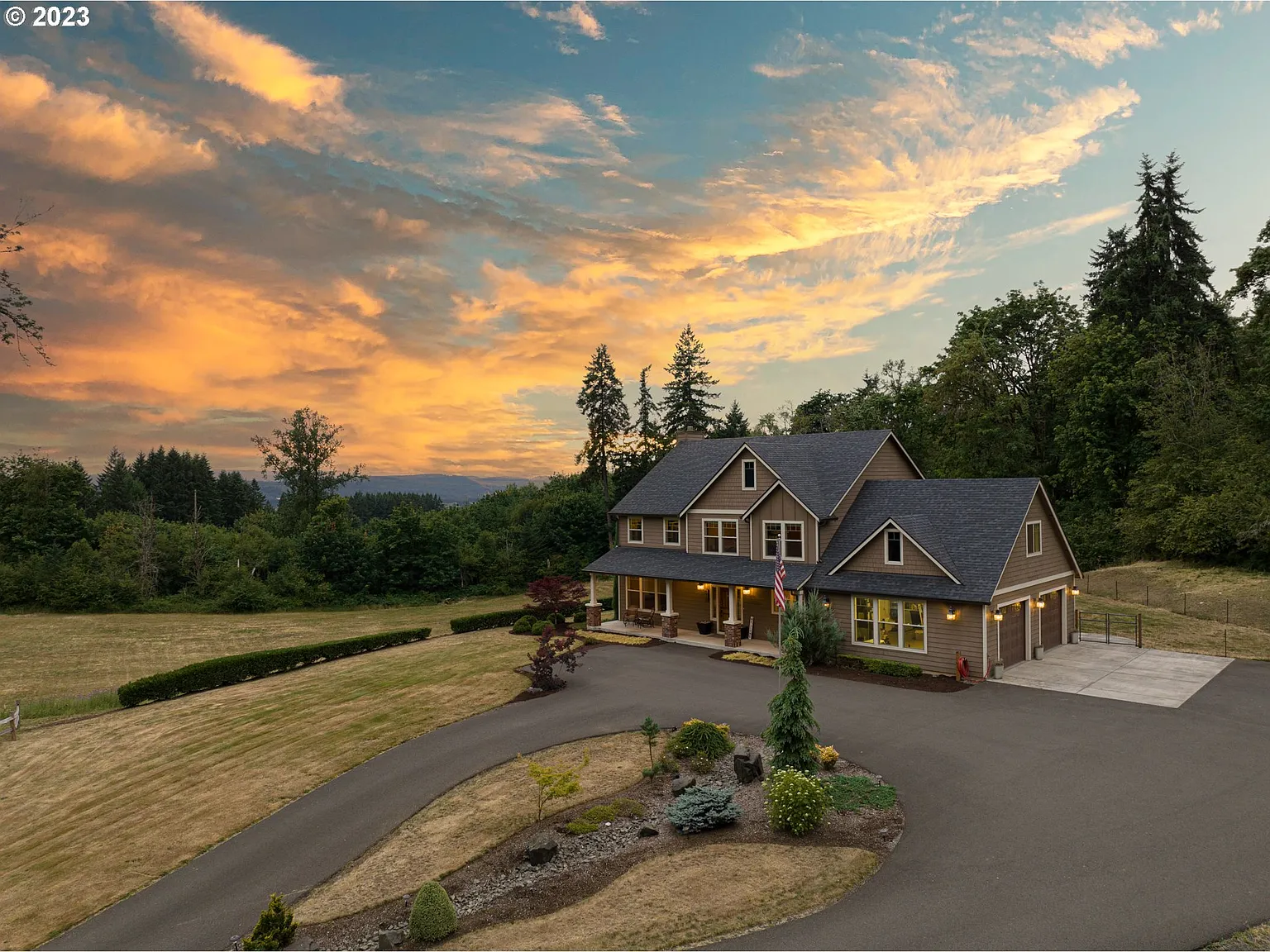 Located less than 5 min to I5, this custom-built 2-story home offers privacy and views. With 4 bedrooms, a main floor office, an upper office, and a bonus room, it suits everyone. The property features a circular paved drive, engineered wood floors throughout, granite counters, and beautiful cabinetry. The spacious kitchen has double ovens, and is great for entertaining. HUGE PANTRY! Bedrooms have big walk-in closets. Additional highlights include central vac, and air conditioning, as well as a Fireplace Xtrordinair. With a private well and septic system, this home offers minimal utility bills. Don't miss out on this opportunity to own a close-in and remarkable property.