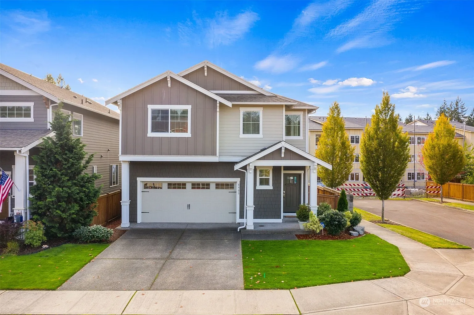 Immaculate, spacious open concept 4 bedroom/2.5 bathroom at Campus Springs in Hawks Prairie. Vaulted ceilings welcome you and to the living/dining/kitchen area. Kitchen is well-appointed with granite island, counters and full height backsplash. New microwave, dishwasher and fridge. Second floor hosts a large loft area. Primary bedroom has massive 5-piece bath and walk in closet. Tankless water heater, even central A/C. Landscaped corner lot with fully fenced back yard with covered patio and newly planted evergreen trees for extra privacy. Hawks Prairie offers miles of paths, several playgrounds, two golf courses and just minutes to I-5, shopping and JBLM.
