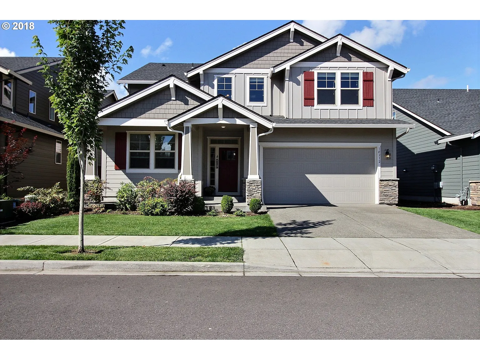 This home is now vacant and ready to move into!!Amazing house with a fantastic backyard. Spacious great room w/9' ceiling & gas fireplace. Formal Dining Rm w/Butler's pantry, island kitchen w/slab granite counters, a/c.full height backsplash & hardwood flooring. GE appliances fridge, 2" faux wood blinds,landscaping w/irrigation, Energy Star efficiency, and a large covered composite deck complete with a hot tub