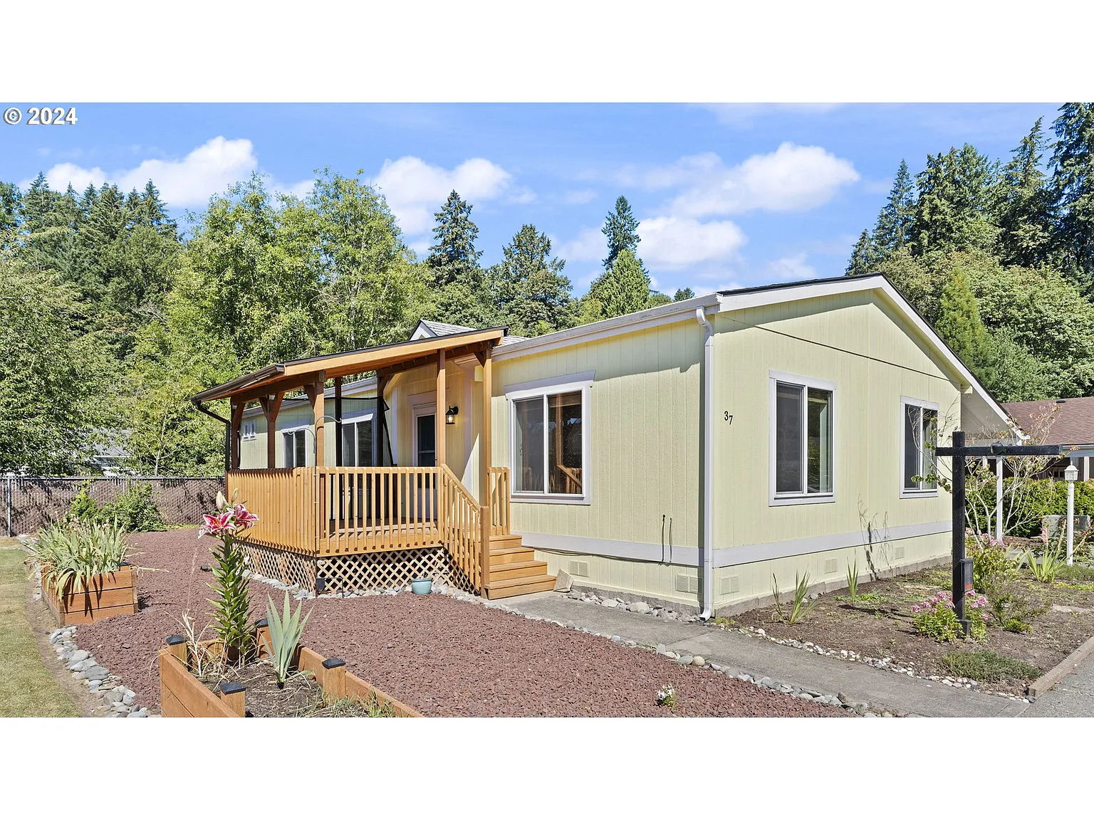The Lifestyle You have been waiting for!This newer 3 bedroom, 2 Bath home is located in the well maintained Woodland East 55+ Gated Park.Space Rent is $1250 a month. Alderwood cabinets, Breakfast Bar, Solar Tube, Skylight, Walk in Shower, Walk in Closet, Covered Deck,Covered Patio.