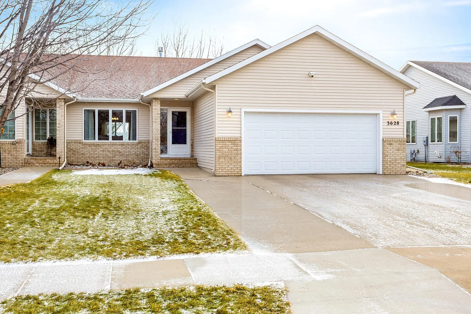 This well-maintained home offers convenient main-level living with a spacious and functional layout. The home features three bedrooms and three bathrooms, along with vaulted ceilings that create an open and inviting atmosphere. The living area includes a cozy gas fireplace, perfect for relaxing evenings. You will appreciate the newer flooring, furnace, AC unit, and much more! Enjoy the flexibility of having a laundry room on either the main level or in the lower level, depending on your needs. The lower level also includes a versatile flex room that can be used as a home office, gym, playroom, or additional living space. Outside, the fully fenced yard provides privacy and space for outdoor activities, complete with a patio and storage shed. The finished garage and abundant storage throughout the home add convenience and practicality. This property combines comfort, functionality, and plenty of space both inside and out.