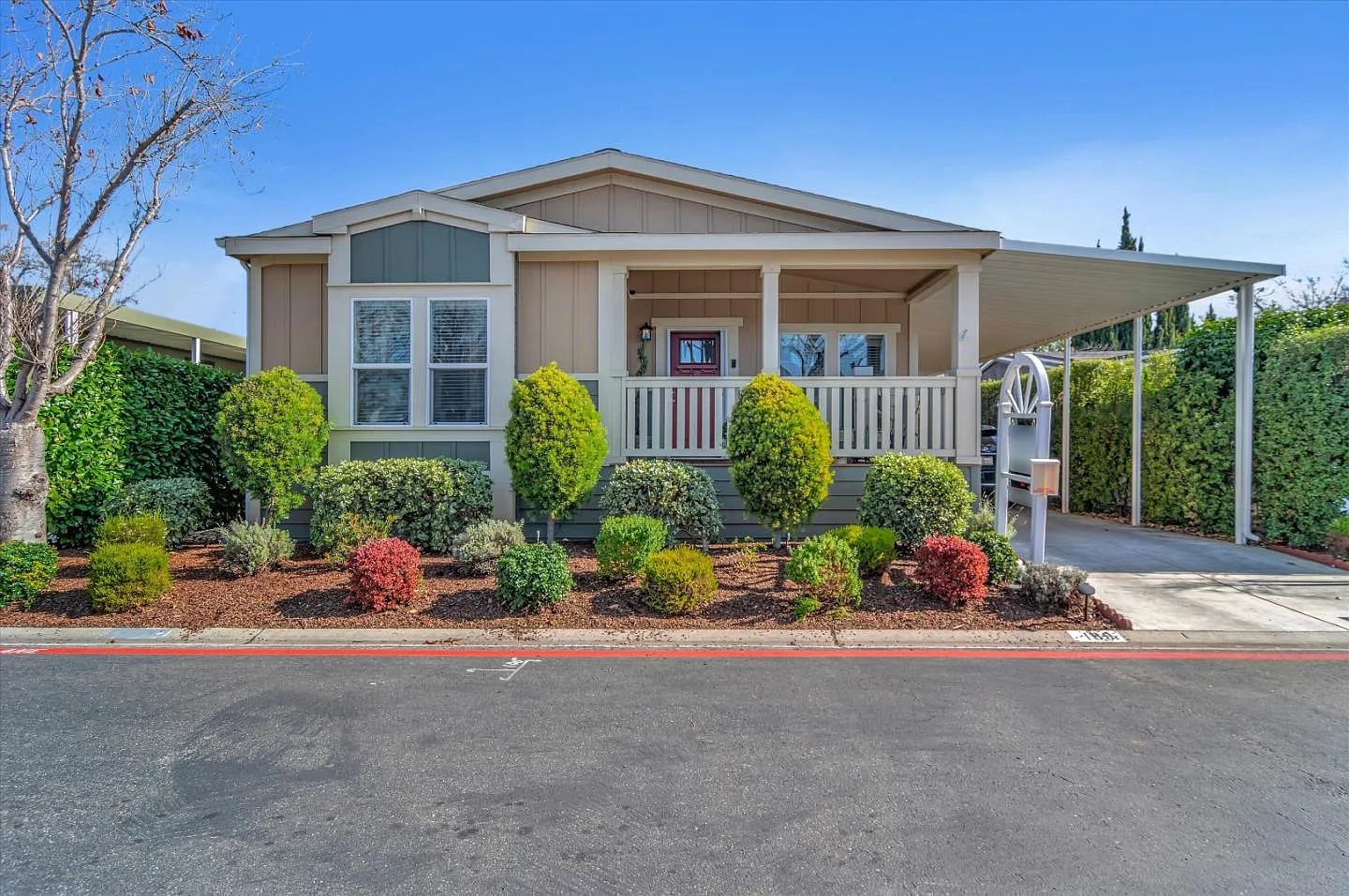 Live the good life in Cape Cod, where senior living is at its ideal best. This 3 bedroom, 2 bath home is located on the premium perimeter lot overlooking the greenbelt on back side of the clubhouse with visitor parking. The open floor plan boasts wood grain flooring throughout, gas fireplace, and large windows, which offers natural lights to flow throughout. The gourmet kitchen with an eat-in island is equipped with a full range of appliances, premium granite countertops, and upgraded cabinets for storage. Additional features included solar lights, water softener system, screen doors, air conditioner, full length awning, & recessed steps for spacious parking area. All bedrooms are good-sized, the master suite showcases a private bathroom with his and her sinks, soaking tub, and a walk-in tile shower. The home also has an oversized 20x6 shed and a nice-sized yard with premium pavers that is great for BBQs and gardening. Sellers will include all the TVs without an additional fee. This home is conveniently located near Mt. View and Santa Clara, close to Highway 101 and 237/85. It is minutes from many high tech companies, Levi's Stadium, and an easy access to public transportation such as VTA and light rails. The peaceful and ideal location of this wonderful home is a hidden gem!