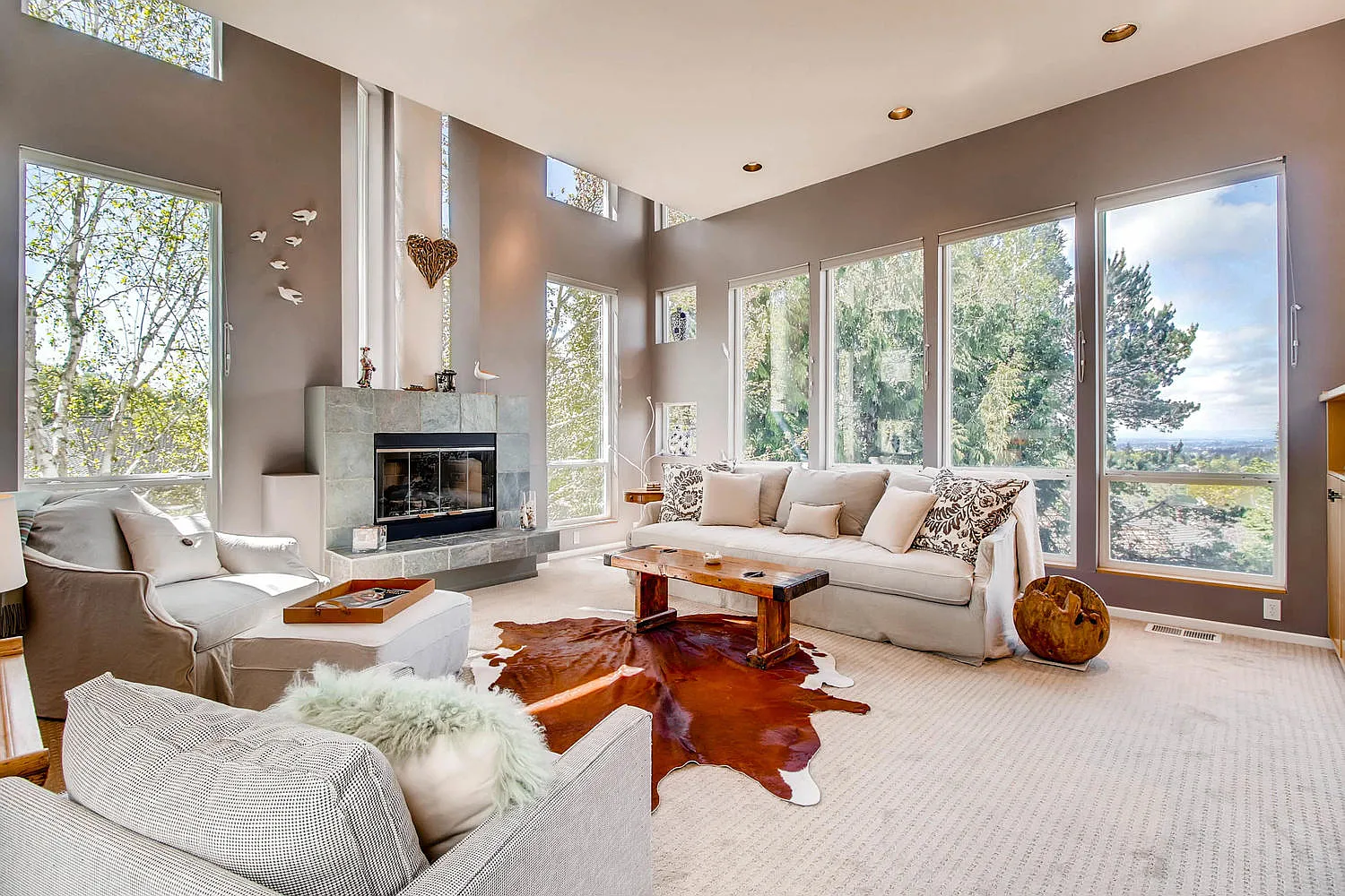 Welcome to this custom-built unique exquisite house on a view lot nestled in the highly sought-after Forest Heights neighborhood. This impeccable contemporary masterpiece offers hard-to-find style and sophistication in over 4,200sf. Prepare to be captivated by the stunning long-distance views that surround this private property - visible from almost every room. New roof, 3 bedrooms and with 3 new energy saving high efficiency mini-splits in each bedroom upstairs, so everyone can enjoy heating and cooling based on their own preference. 2 full bathrooms upstairs, 1 half bath on main, and 1 half bath on the lower level. The main level boasts an open floor plan with expansive living spaces perfect for both daily life and entertaining. High ceilings and floor-to-ceiling windows increase the sense of space and abundance of natural light. Extensive upgrades throughout include kitchen, bathrooms, high efficiency HVAC systems, brand new refrigerator, sky lights, siding, carpet, landscaping, fresh paint, etc. Lovely sunroom off the main level family room offers a leisurely retreat and outdoor sensation on Portland's rainy days. The daylight lower level is fully finished and has numerous windows, 10 ft. ceilings, HVAC, large light-filled office, 4th bedroom/potential 2nd office, family room, kitchenette, half bath, and gym/playroom/workshop. It has exterior entries to the yard. In addition, over 200 sf of unfinished storage with built-in shelves in the lower level. Enjoy blueberries, blackberries, and a pear tree in your private backyard, and a walnut tree in the front yard. Easy Commute to Downtown, Nike & Intel. Pearl District, etc. Enjoy Forest Heights' unique amenities, including Mill Pond Park, a village center with dining and coffee, a private shuttle to the Sunset Transit Center, and over seven miles of scenic private trails. Forest Park Elementary, West Sylvan Middle School, and Lincoln High School. The house can be leased partially furnished or unfurnished. Tenant is responsible for the following: - Utilities: (Gas, Electric, Water/Sewer, Trash); - The front yard recently converted from grass to mulch landscaping (sprinkler system installed). Tenant responsible for maintaining front and back yard, keeping landscape to community required standards; - Renters insurance required; - No smoking allowed; - All adults aged 18+ need to apply; Pet-Friendly: 2 Pet Max Cats and small dogs welcome, breed restrictions apply.