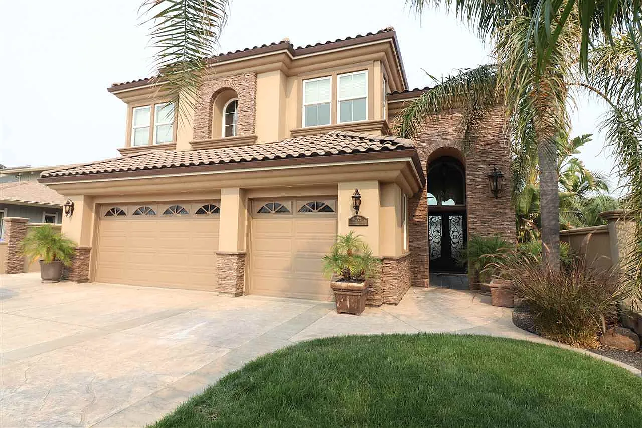 MEDITERRANEAN CUSTOM! FABULOUS WATER VIEWS & MINUTES TO FAST WATER - 4 BEDROOMS /3 BATHS + BONUS LOFT (1 BDRM/BATH ON MAIN LEVEL) - Dramatic entry w/New Custom front door - New exterior rock accents to stucco - 2 Story volume Coffered ceiling w/tile inlay - Wide Open floor plan - New carpet -Spacious great room w/ TV/Art Niches & raised hearth fireplace - Dual stairway-Gourmet Kitchen w/SS appliances,Thermador 6 burner stove/hood, double ovens, dishwasher, refrigerator, built in coffee maker, pantry + additional built in buffet cabinet & Large Center Island w/eat at counter seats 6-8 + large dining area-Master Suite w/covered balcony, Lux bath: 3 way fireplace, jetted tub, 2 person shower, granite vanity w/dual sinks & walk in closet - Back deck w/covered overhang, custom cool decking & smoked glass railing, Double U-Docks + side tie for large Yacht & 110/220 amperage-Custom storage sheds on both side yards-3 car finished garage w/stained cement floor, built in cabinets & wall AC Unit