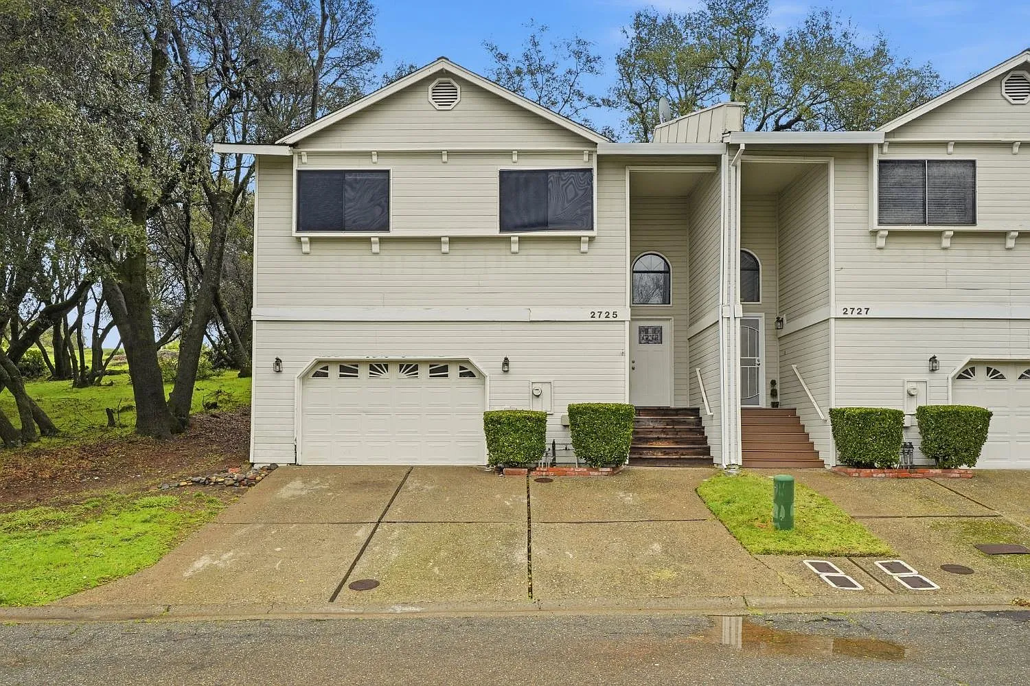 Come check out this private, spacious End unit townhouse, 3 Bedroom 2 Bathroom with a large 2 car garage and additional parking across the street, nestled within a highly sought after quiet neighborhood. Freshly painted interior, brand new carpet. The open concept living layout features high ceilings, and a wood burning fireplace. The backyard features a private patio and no rear neighbors. Conveniently located on a peaceful court but minutes from TOP RATED PUBLIC SCHOOLS. Just 4 minutes from Cameron Park Lake, 5 minutes to local grocery stores. This is a great starter home.