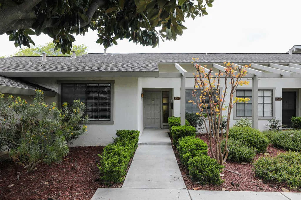55+ Tranquil and private, this is the Villages Golf and Country Club. Amazing lifestyle to live with 100s of activities to choose from and a place to make new friends for life! Beautiful ground level 2 bedroom 2 bath unit with expansive East facing covered back deck perfect for morning sun and afternoon shade. Open spaces inside with 2 dining spaces, updated kitchen including SS appliances and breakfast nook. It's a blank canvas ready for you to bring your personal touches. Large bedrooms with walk in closets, great bathrooms and wonderful natural light throughout. Perfectly situated within it's complex this unit is a gem. Don't miss this opportunity to enjoy the Villages lifestyle.