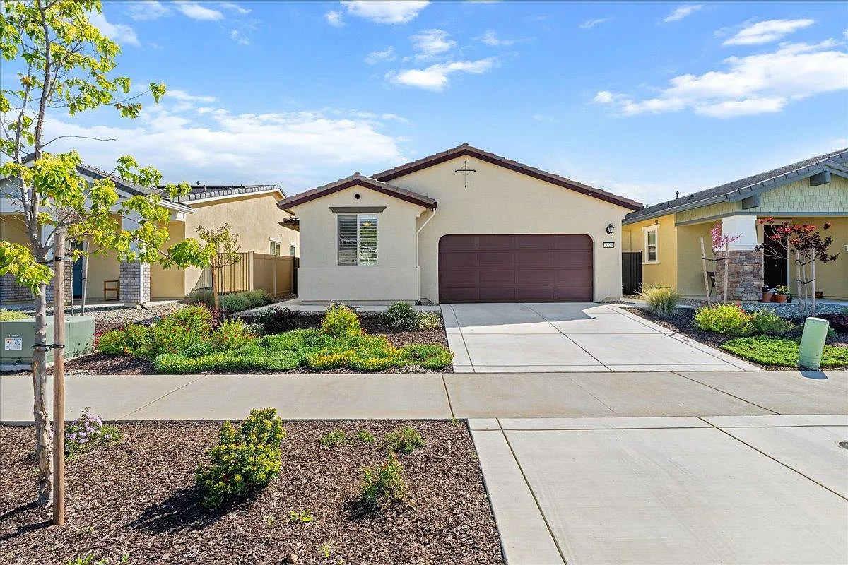 Welcome to 3229 Calypso Circle, a beautifully maintained, nearly new single-level home located in the highly desirable Heritage Carson Creek community of El Dorado Hills. Thoughtfully designed and barely lived in, this home offers the perfect blend of modern comfort, accessibility, and low-maintenance living with resort-style amenities. From the moment you arrive, you'll appreciate the charming curb appeal, clean architectural lines, and professionally landscaped setting. Inside, the home opens to a bright and inviting layout featuring wide-plank flooring, neutral tones, and abundant natural light. The open-concept floor plan is designed for both everyday living and effortless entertaining, with seamless flow between the kitchen, dining, and living areas, along with convenient access to the outdoor patio. The kitchen is a true centerpiece, showcasing crisp white cabinetry, quartz countertops, stainless steel appliances, and a large island with bar seating. Plantation shutters throughout the home enhance both style and functionality, offering privacy and energy efficiency. Just off the entry, a private bedroom with its own en-suite bathroom provides ideal space for guests or multigenerational living. The luxurious primary suite is tucked into a quiet rear corner, creating a peaceful retreat complete with a spa-inspired bathroom, dual vanities, a large walk-in shower, and a spacious walk-in closet. Designed with ease of living in mind, the home is handicap accessible, offering comfort and convenience without compromising style. Adding even more value, the property includes owned solar for improved energy efficiency and long-term savings. One of the standout features is the beautifully finished backyard. Unlike many homes in the community, the seller has already completed the landscaping, creating a private and inviting outdoor space ready to enjoywithout the added cost or wait. Living in Heritage Carson Creek means enjoying an exceptional lifestyle with access to both clubhouses. Amenities include indoor and outdoor pools, spas, a fitness center, billiards room, activity spaces, scenic walking trails, bocce ball, tennis, pickle-ball, and more. With its pristine condition, thoughtful upgrades, and access to unmatched amenities, 3229 Calypso Circle presents a rare opportunity to enjoy turnkey living in one of El Dorado Hills' premier 55+ communities.