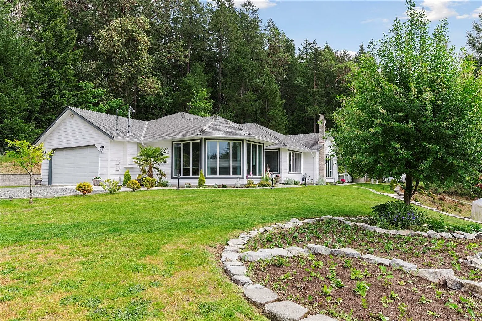 Set on a fully usable 1-acre lot, this updated 3-bed, 2-bath rancher offers over 1,800 sqft of well-designed living space. The modern kitchen features stainless steel appliances, ample cabinetry, a large island, and flows into a bright breakfast nook and cozy family room with a natural gas fireplace. Entertain in the formal dining area or the sunlit living room, thanks to expansive windows that flood the home with natural light. The spacious primary suite includes a 4-pc ensuite and generous closet space. Two more bedrooms, an updated 3-pc bath, and a laundry room complete the interior. Step outside to enjoy a large patio, beautifully landscaped gardens, mature trees, and an automated irrigation system. Additional highlights include a detached 484 sqft shop, double garage, RV parking, and potential for a carriage home (buyer to verify). Just a short walk to Nanoose Bay and Nanoose Elementary, this property blends rural charm with modern convenience.