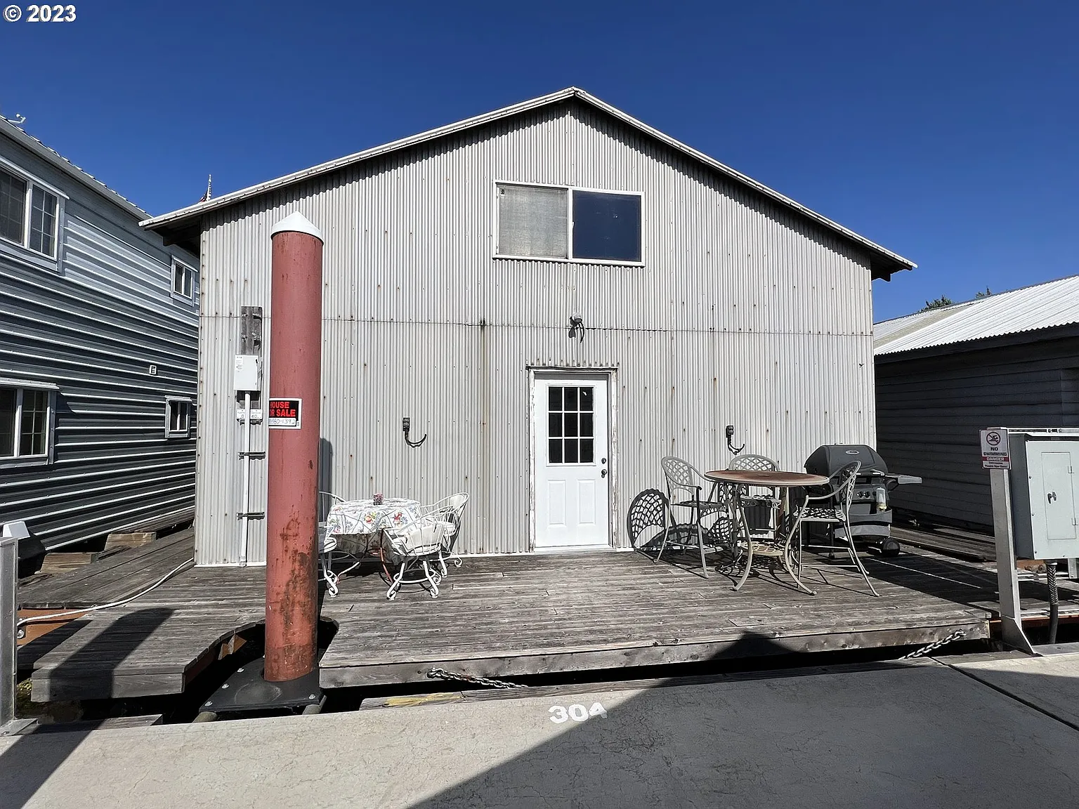Metal boat house with large covered & lockable boat well. Kitchen & dining area and a generous loft, each of 375 sqft. Additional 1000 sqft of enclosed boat barn, with a 36 x 13 boat well. Bathroom and shower available in parking lot. 3 overnights are allowed in the marina in any 7-day period. Port rules do not allow bathrooms, porta-potties, functional plumbing or sinks in boat houses. Self-contained toilets like incinerator toilets are ok. Amenities can also be provided on a boat in the boat house. Current lease runs through December 2026. Port of HR has given notice of non-renewal of leases, at which time boat houses would have to be removed. Boat house has new pontoons and was moved to the Hood River marina from The Dalles marina. There is an ongoing effort by owners to renegotiate renewal of the leases. Enjoy the summer on the water! 2023 annual morage fee was $3293.45, annual insurance is about $800, and property tax was $1405.00.