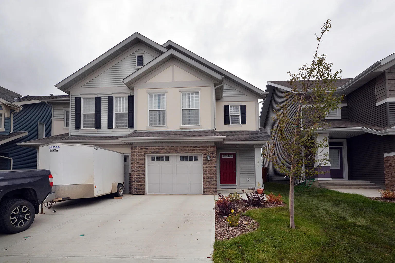 Discover the perfect home in the heart of Edgemont with our stunning 3-bedroom, 2-storey duplex! Nestled in a serene corner of west Edmonton, just off the Anthony Henday, this modern gem offers a lifestyle of comfort and convenience. Step inside to find an inviting open-concept layout, boasting a well-appointed kitchen with sleek granite countertops, ample white cabinets, and a spacious pantry. Enjoy hardwood floors that lead you through the dining and living areas, accompanied by a versatile office/den. The main level also hosts a convenient powder room. Upstairs, retreat to three generously sized bedrooms, including a master bedroom featuring his and hers closets. Experience the ease of front-load laundry just steps from your rooms. The unfinished basement offers ample storage. Your new home comes complete with a single-car garage, driveway pad, and balcony for those moments of relaxation. The charming Edgemont neighborhood provides a welcoming community and convenient access. Seeking responsible, long-term tenants with application criteria including credit, rental, and employment checks. Small pets considered, non-smoking premises. Available: May 15, 2025 Address: 1026 East Bend NW Rent: $1,999.00 plus utilities Security Deposit: $1,999.00