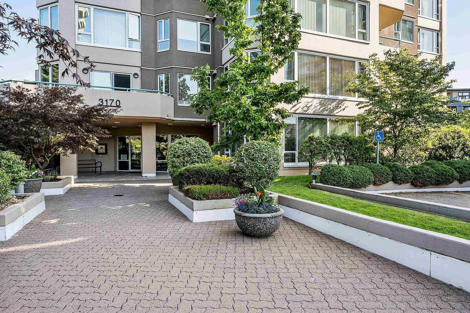 Welcome to Regency Park Towers, a secure hi rise concrete building with luxury resort amenities surrounded by manicured gardens. Great floor plan with stunning mountain views from east to west. meticulously renovated 1162 sq foot 2 bedroom 2 bath condo plus den/solarium. Updates include laminate plank flooring, new Kitchen, S/S appliances, center island with quartz counters. Spacious primary bedroom offers a walk-in closet and 4pc bath. Bright open living area overlooks the treed park area. Amenities include 3 guest suites, an indoor pool, whirlpool, steam room, 2 exercise areas, workshop and a social and library area. This is a secure adult building with RV parking located in central Abbotsford.