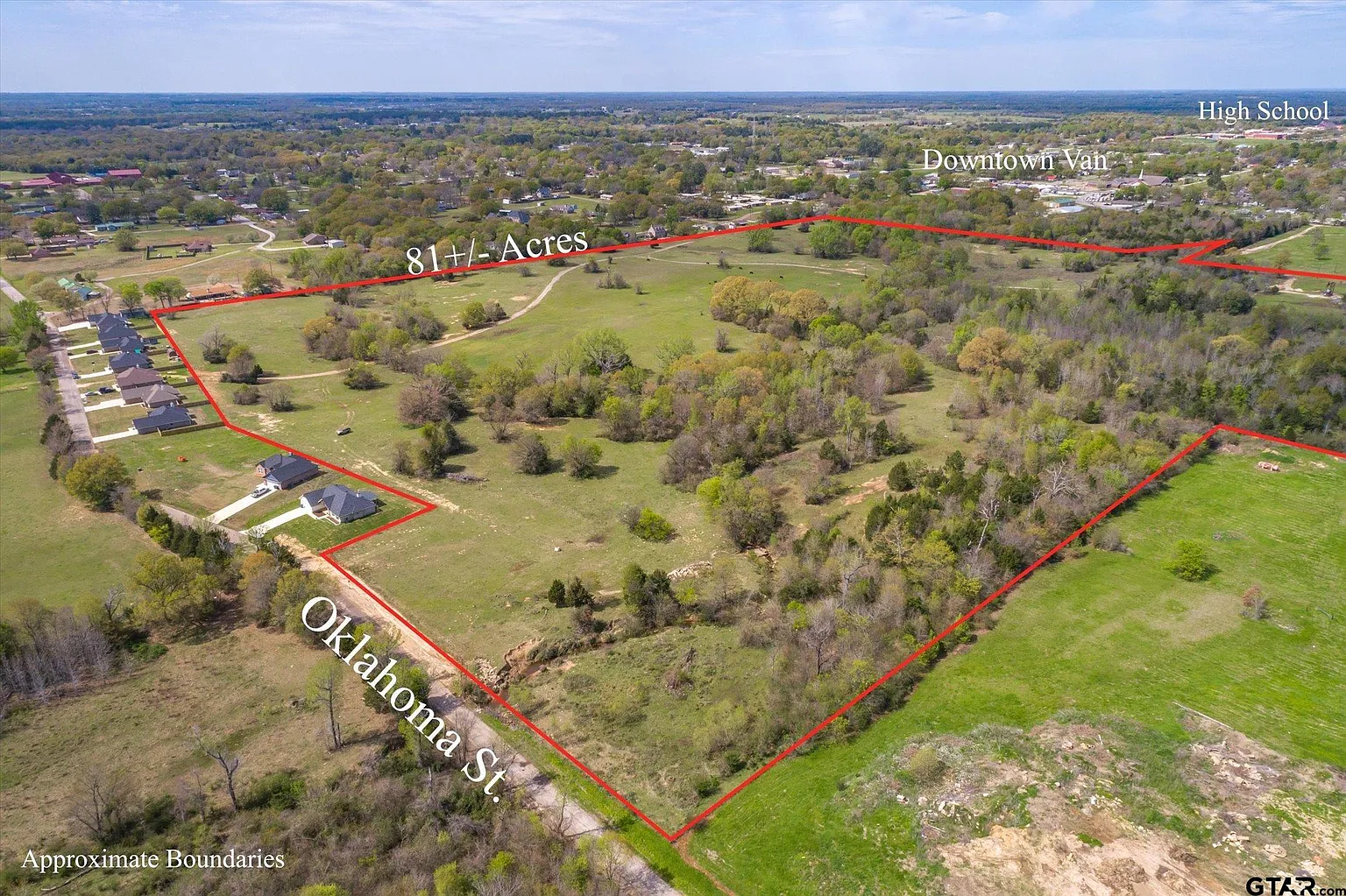 Property Overview: 82 +/- acres (out of a larger tract) of land inside the city limits of the town of Van. Property Highlights: A lot of Development Opportunity with this property in a growing town and area. One mile from Interstate 20, 2.2 miles from Van High School, 0.7 miles from the Junior High, 1.8 miles from the Middle School, & 1 mile from the Intermediate School. Property ID: R000020640 Please do not enter the property, contact your agent or the listing agent to set up a showing.