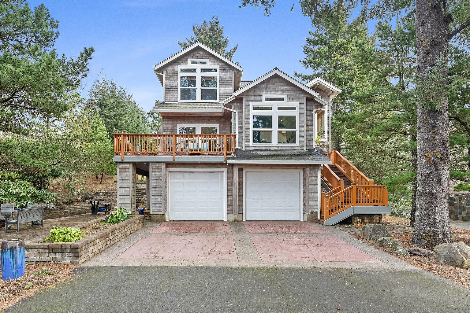 Ever-changing tides and stunning sunsets are just the beginning of what this thoughtfully designed luxury home has to offer. This inviting 3 bed, 3.5 bath residence features an elegant entryway with vaulted ceilings, a cozy propane fireplace, and laundry rooms on two floors. French doors lead to an office/den. The open-concept design connects the kitchen, dining, and living areas, allowing natural light to pour in through large windows that frame picturesque ocean views. The gourmet kitchen boasts stainless steel appliances, a gas stove, knotty alder cabinets, ample prep space, and a walk-in pantry. The primary suite offers ocean views, an updated modern bathroom, and a custom walk-in closet. The versatile guest bedroom/workout room features rubber flooring and a fold-down Murphy bed. The home is equipped with a central vacuum system throughout, including the garage and workshop. Additional upgrades include a new furnace (2022), a water heater replaced (2020), automatic backyard lighting, new carpet in bedrooms, and laminate flooring (2021). Step outside to the expansive private Trex deck with a built-in, covered barbeque area, and a front porch ideal for enjoying ocean sunsets. The fenced rear yard and courtyard firepit are perfect for s'mores and stories. The property includes an oversized 2-car garage and a finished, heated workshop with a full bathroom. Located in the upscale Terrasea neighborhood, known for its quiet and private atmosphere, friendly neighbors, and proximity to Oceanside beaches, this property is perfect for a full-time residence or a coastal beach home.