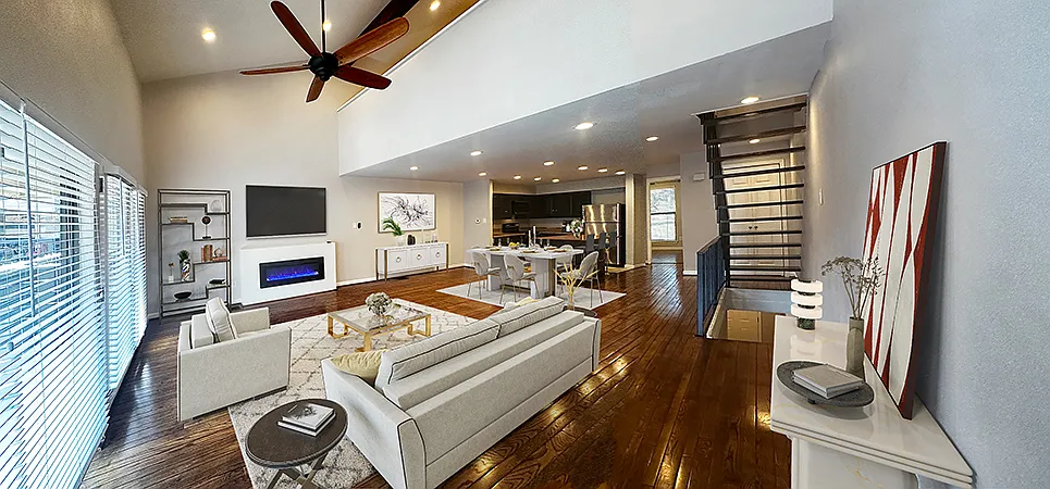 Two living areas - Fully remodeled and gorgeous! This 3 story townhouse with loft is amazing. The first floor houses a large dramatic entry with exposed brick walls - great for displaying artwork! There's also an attached 2 car garage with huge laundry/storage room. The second (main) floor is a huge open floor plan living/dining/kitchen space with all kinds of extra cool features. The modern electric fireplace can be used with or without the heat function and the color of the flames can be changed to suit your mood! The kitchen features stainless steel appliances, granite counters and lots of storage and work space. The smaller bedroom is also located on this floor as well as a full size bathroom. A large covered balcony is located off the living room and overlooks the pool in this small complex - plus there's a spiral staircase that leads to a private decked patio. The 3rd floor begins with a huge loft space - great for an office or second living area - and it's so big, it can be used for both! The primary bedroom suite is next to the loft and it is nothing short of spectacular! Extra high ceilings, a covered balcony, large walk in closet and an en-suite bathroom with double sinks and lots of counter space. All of this in a small 20 unit community that is located next to the SoPac Trail and minutes from the best shopping, recreation & dining in town! A 15 minute commute to downtown Dallas or to Plano - it's perfectly situated to get anywhere you need quickly and easily. We are Great New Place - a small family owned company that specializes in unique living spaces and superlative service. Don't take our word for it - here's a recent comment from one of our residents: "Thank you guys for everything...it was such a great experience having you guys as a landlord. I now know what high standards other landlords need to meet. Thank you for your kindness and great professionalism. And I wish you two great things in the future. I know you will continue to grow as the most formidable rental company here in Dallas. I truly mean that. Again thank you so very much.