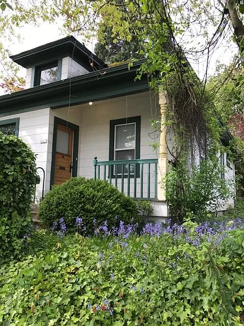 Charming Sellwood Bungalow 1627 A SE Tacoma Street Portland, Oregon $1995 per month This charming, turn of the century bungalow has been completely renovated inside and out by its architect/owner. Located on a wooded lot with off-street parking, this 1906 home is only blocks from parks, a pool, waterfront access, a golf course, shops, the Springwood Corridor Bike path, restaurants, famed Antique Row and New Seasons Market! This cozy home has one bedroom and one full bath with tub and shower. Its dining room and living room are washed in sunlight most of the day. Its front parlor or second living room can easily be converted into a second bedroom or office. There is plenty of storage in both the attic space and the full, dry basement complete with washer/dryer and forced air furnace. The kitchen contains maple cabinets with glass doors and appliances, including a microwave and dishwasher. Its bright and airy breakfast nook has a view of a 100 year old redwood tree and private deck. The renovation of this home includes all new electrical, plumbing, insulation, sheetrock, windows and refinished wood floors all the safety and convenience of the new with the character of the old! This lot is shared with a small detached Accessory Dwelling Unit (ADU). The ADU was designed and built by this property's architect/owner. CM ZONING allows live-work and limited commercial use . ideal for a graphic artist, architect, engineer, designer, agent, photographer, attorney, web-designer, naturopath, etc. LOCATION, LOCATION, LOCATION: This home is in a great location in Portland's beautiful Sellwood neighborhood. It is an easy commute to downtown, crossing the Willamette River on the Sellwood Bridge and an easy walk to the Light Rail Tacoma Station. This location also offers quick access to 99W and I 205 connections to the airport, Mt. Hood & Salem. TERMS: GOOD CREDIT RATING & REFERENCES FIRST & LAST MONTHS RENT DUE AT SIGNING SECURITY DEPOSIT NO SMOKING NO PETS The renter is responsible for utilities. First and last months rent and security deposit are due at signing. The driveway has room for 2 vehicles. This is a smoke free property! Small dogs ok.