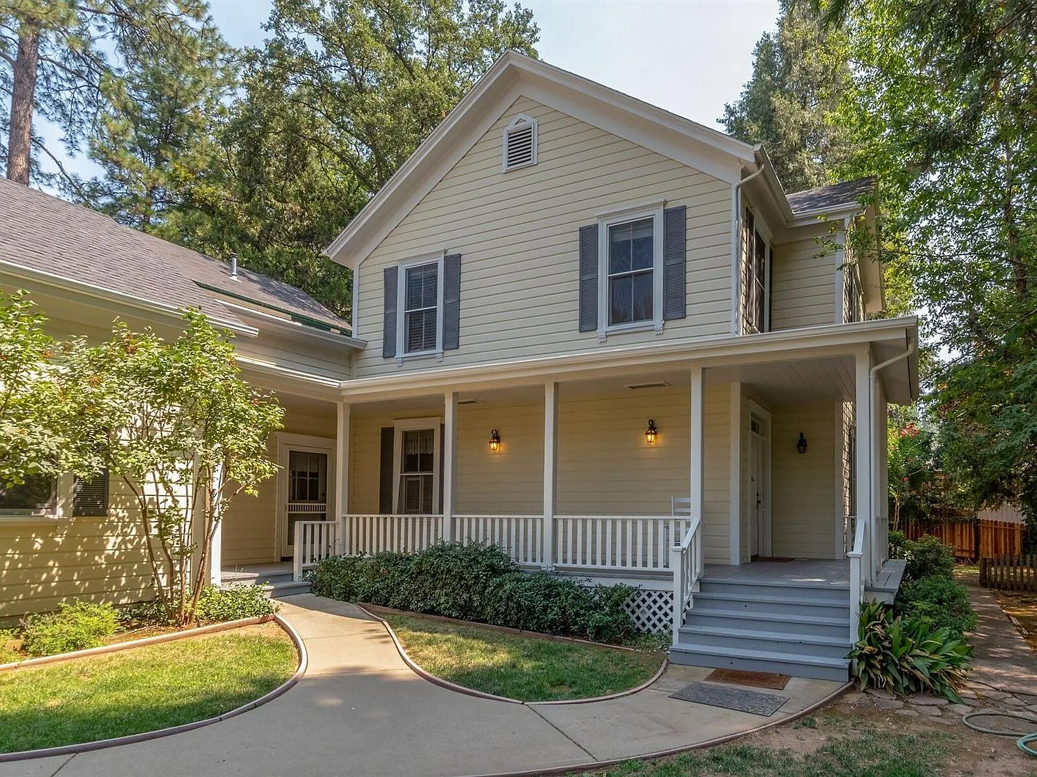 Historic charm of days gone by are remembered in this lovely HIstoric Placerville home with an in-town location! Featuring 3-4 bedrooms, 3 full baths,formal dining rm., spacious kitchen with new granite counters, desk. Spacious living, family room areas w/ original wood flooring & grand staircase. Wood stove w/brick surround. Downstair bdrm./office & bath. Covered porch, 2-car att. garage,located on .36 ac. Adj 1-bdrm 840 sf.w/1+-car garage & sep drive, workshop. 10 yr.roof Apt. 1 bd. 1 bath.