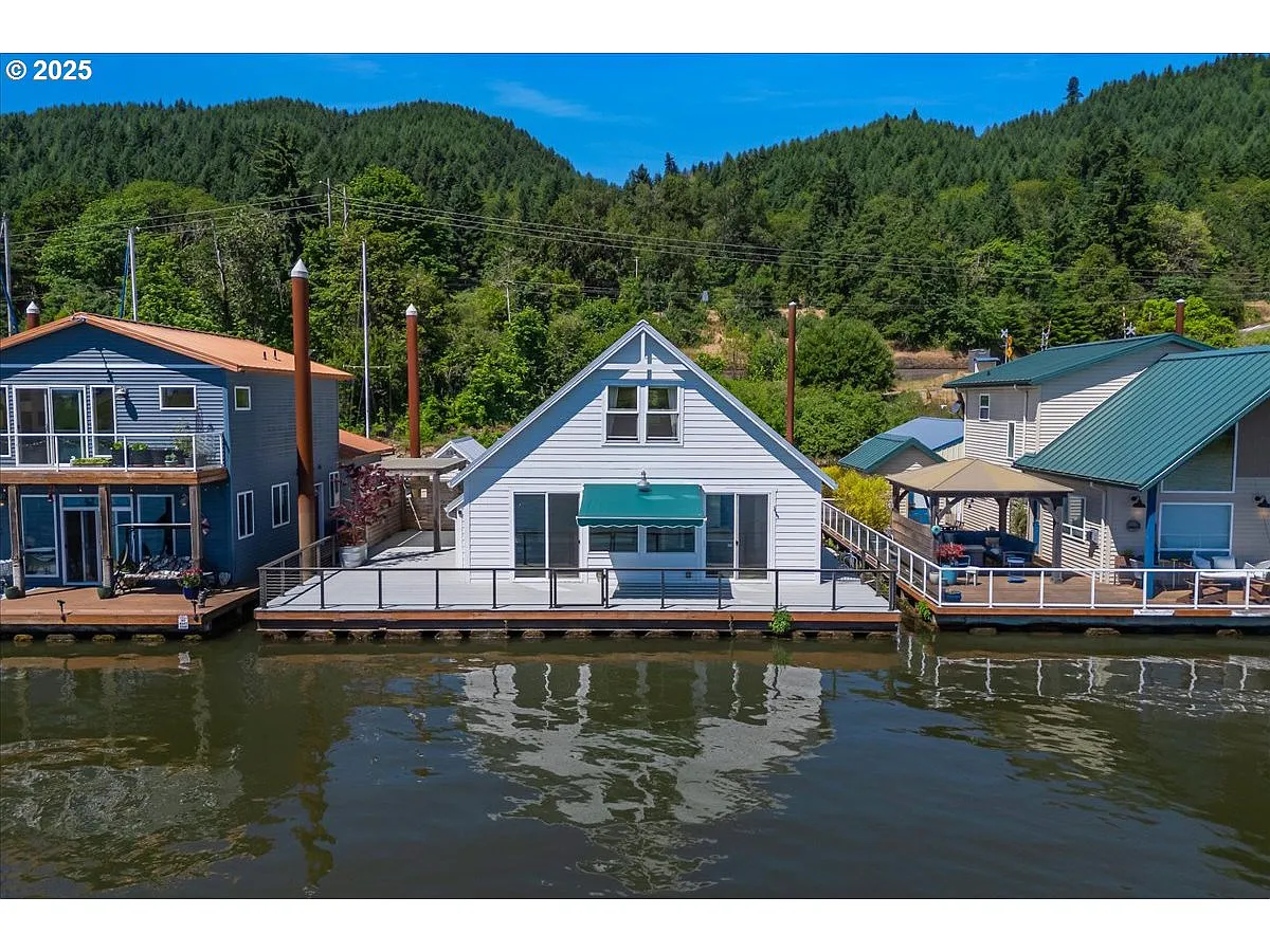 Totally move in ready floating home right on the river in the highly desirable Rocky Pointe Marina. Great floor plan with the master on the main level. Spacious and open kitchen, dining and family room area. All with un interrupted river views. 2nd big bdrm on the main w/walk in closet. Convenient utility rm on the main. Upstairs has a huge 21x13 bdrm or bonus room with a Mt View. There is also a office upstairs, could be used as a 4th bdrm (not conforming ). Huge deck to enjoy views up and down the Multnomah channel and the beautiful pastoral views of Sauvie's island. The deck has stainless steel railings topped with mahogany rails and a gate facing the river to pull your boat up to jump into your home for more goodies for the boat ride. If you need shade, the deck has an electric awning with remote controls. If you're not familiar with the different marina's in the Portland area, this is the one people want. You can rent a slip for your boat so it stays in the water year around. Secured gate to get down to the home as well as the parking lot, which you get 2 parking spaces. There is a meeting/party room with kitchen to gather and could be rented for private functions. Separate fenced off patio on the river with tables to visit with friends and neighbors. Has covered gazebo with fenced garden and private raised beds. The moorage has their own fuel dock. The floating system for the home is top notch, oversized logs on steel stringers and received a high 4 rating which means it has 20+ years. Water, sewer and garbage included. Slip lease for the floating home goes thru 2043 and can not be increased by more that 3% a year. This is the total floating home package. It doesn't get any better.