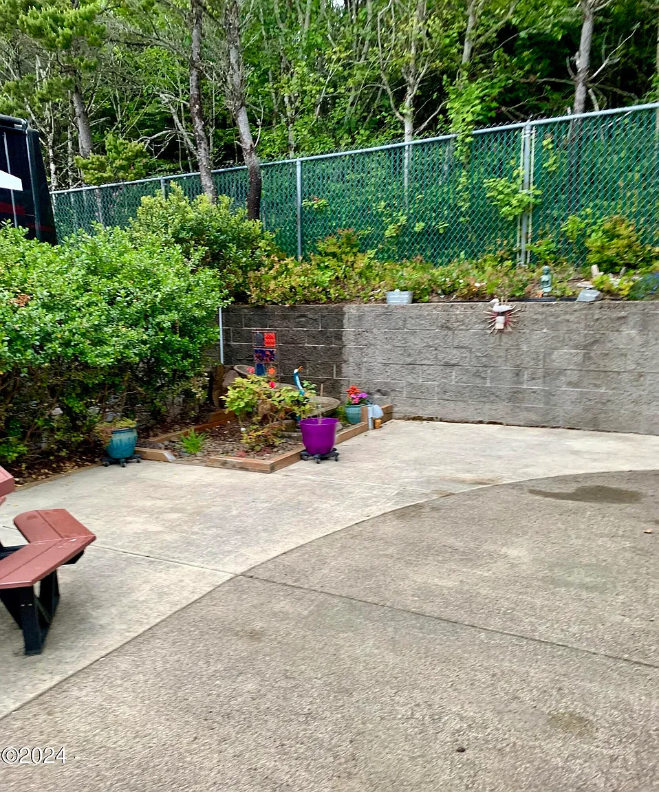 This back in lot has an expanded sitting area for outdoor living; tall hedges for privacy and wind block. This lot is near the seasonal outdoor pool & hot tub. Restrooms & laundry are close. Pacific Shores Motorcoach Resort is located on a bluff overlooking the ocean and has a lighthouse view. Nature walking trails through the wood and access to an uncrowded beach. A large clubhouse and owner's only lounge, gym and kitchen. Indoor/outdoor pools and spas and hot sauna.