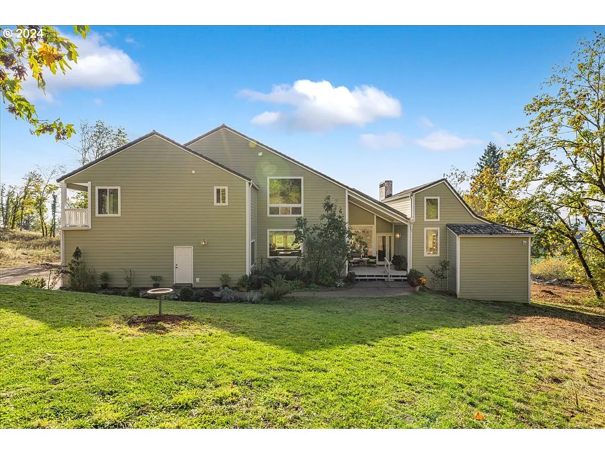 Nestled on 20 private acres in Newberg’s renowned wine country, this custom-designed home showcases breathtaking territorial views at every turn. Step inside to enjoy a light-filled, open floor plan with soaring ceilings and beautiful hardwood floors that add warmth and charm throughout. The inviting living and dining area, complete with a cozy wood-burning fireplace, creates the perfect ambiance for intimate gatherings and holiday celebrations alike. At the heart of the home is a chef’s dream kitchen, offering abundant storage, generous counter space, a large island, and a cozy nook ideal for sharing meals and creating memories. The large windows let you take in the view of the countryside & invite the beauty of the outdoors inside. Upstairs, the oversized primary suite serves as a private retreat, with high ceilings, ample windows for natural light, dual sinks, a built-in jacuzzi tub, and a spacious walk-in closet. Three additional bedrooms await, one featuring its own private deck, along with updated bathrooms, new carpeting, and fresh interior paint. Recent upgrades include leaf guard gutters, new windows, Hardie plank siding, a new septic system, a new HVAC system, and new garage door openers, ensuring comfort and convenience. Just minutes from the best that Oregon’s wine country has to offer, this home is the ideal place to enjoy your morning coffee or take in a stunning sunset, surrounded by beautiful views and endless potential.