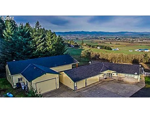 Expansive and panoramic views of wine country and the Oregon Coast Range. Enjoy breathtaking sunsets and city lights of Yamhill. Property features spacious kitchen with gas appliances, master on main with a private bath. Lower level family room is wired for surround sound and hosts an office/bonus room. Massive 60 X 40 Shop includes a 24 X 21 bay perfect for parking an RV.