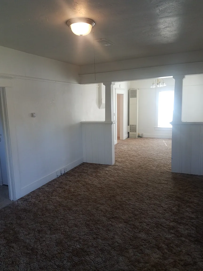 Very cute old house in the center of town. House has been newly painted. Newer floor and kitchen cabinets, remodeled bathroom. Newer minisplit with air and heating throughout house. Back yard totally fenced; with new deck great for kids. Off street parking available behind house. Large lighted work room behind house that can be part of the rental. Work / Storage room can be split into two spaces Lessee pays all utilities