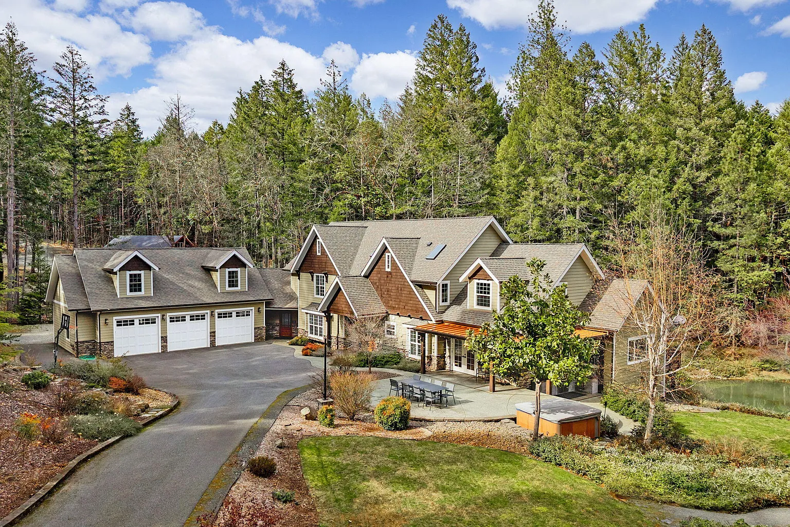 Breathtaking multi family setup! Sitting on 4.29 fenced and gated acres, the paved driveway from the main gate leads you to this immaculately maintained custom built home. You will love the beauty of the architecture, the wrap around stamped concrete patio, the pond and the landscaping. Main Home has 4 bedrooms, 3 of which are en suite, with 4 full baths, and feature high end appliances, including built in fridge, lovely wood floors, and a butlers pantry. The home also offers beautifully finished 1 bed guest quarters above the finished 3 car garage, attached to the main house by a 400 sq ft laundry room that will delight you with more storage than you can imagine, including the 1000+ sqft daylight basement! And don't miss the gym/multi purpose room just beyond the primary suite! Home also has a backup generator with an automatic transfer switch and is home is wired for audio! Great Well! See the attached amenities list with upgrades noted!
