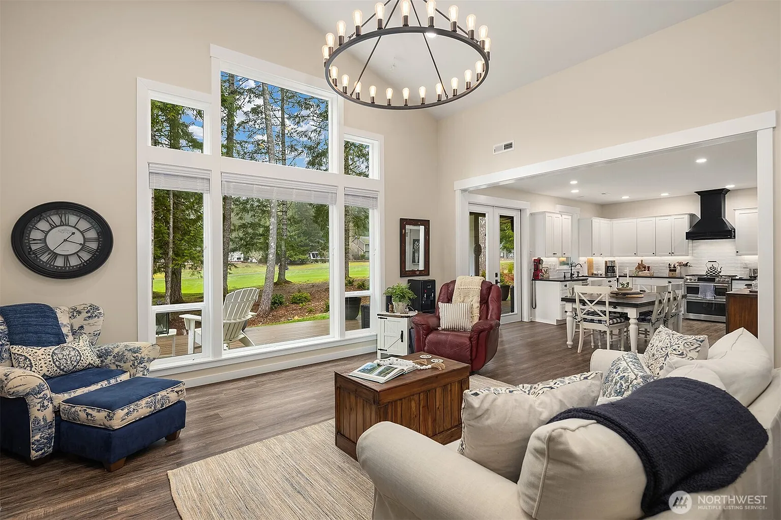 Welcome to the most upgraded golf course home currently available in Alderbrook Golf & Yacht Club—the PNW’s best-kept luxury resort community. Perfectly positioned along the coveted 13th fairway, this recently built custom rambler offers a rare combination of privacy, sweeping golf course views & over $130,000 in curated, design-forward upgrades—a level of finish far beyond typical new construction. Filled w/natural light and soaring ceilings, the open-concept design is anchored by a stunning great room with an oversized gas fireplace wrapped in imported Montana Bitterroot stone. Floor-to-ceiling windows create seamless indoor-outdoor living. The thoughtfully designed layout features two bedroom suites + a den, offering flexibility for guests & work from home. The primary suite is a peaceful retreat, while the guest suite includes an office nook for extended stays. The kitchen offers luxury GE Café appliances, custom lighting, walk-in pantry, bar nook & spacious dining area. The welcoming front patio & oversized, covered Trex deck along the fairway are perfect for hosting or relaxing. Additional highlights include premium LVP flooring, surround sound and generator ready & a 3-car tandem garage w/golf cart space. Mins from the clubhouse, trails, dining, and waterfront recreation—with low HOA dues including unlimited golf for 2—this STR-friendly home offers exceptional versatility. Refined, upgraded & perfectly positioned—Alderbrook’s most beautiful opportunity.