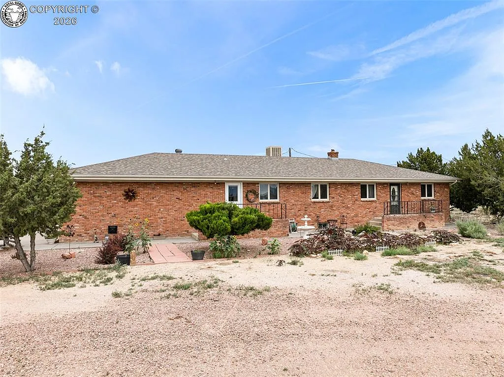Updated Brick Ranch on 4.7 Irrigated Acres with Horse Barn with adjacent 4.7 acre irrigated parcel for sale separately for $125,000, creating a rare opportunity to own a total of 9.4 irrigated acres in Fremont County. This well-maintained brick ranch in Penrose, Colorado, offers move-in-ready comfort on 9.4 irrigated acres, fenced, and cross-fenced acres, complete with a 30x30 horse barn, small corral, and shade trees. Inside, you’ll find 2950 sq ft with 1798 sf on the main level with real hardwood floors and a desirable split-bedroom layout plus a beautifully finished lower level rec room. The open-concept design flows from the living room to the dining area and fully remodeled kitchen featuring AristoKraft cabinets, granite counters, stainless steel appliances, and a glass cooktop. The spacious primary suite offers two walk-in closets and a beautifully updated ensuite bath. Two additional bedrooms and a second full bath are located on the opposite side of the home for privacy and flexibility. A finished basement provides a large rec room ideal for hobbies, a home theater, or extra living space. Comfort is ensured year-round with baseboard heat from a high-efficiency boiler and a roof-mounted evaporative cooler. A new roof was installed in 2021 as part of a full remodel. Solar array was installed in 2023. With a wood stove, a new on-demand hot water system, and updated boiler system ensure that your energy bills will be as low as can be. The acreage is ideal for livestock, gardening, or simply enjoying wide-open space. With its solid construction, thoughtful upgrades, and room to grow, this property offers the best of Colorado living; peaceful, spacious, and practical. Located just minutes from Florence, Canon City, and Pueblo, with Colorado Springs an easy drive away.