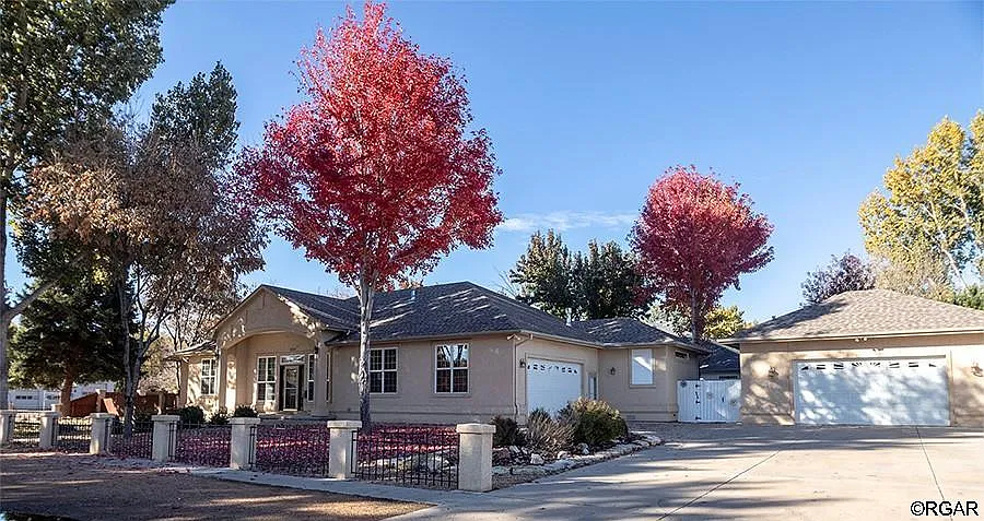Located on one of the nicest residential neighborhoods in Lincoln Park, this regal home is surrounded by towering trees and holds its own in stature with the other high-end properties on the block. Built in 2004, its amenities include celestory windows, a jetted tub, 2 gas fireplaces, 2 decks (one covered accessed via 2 sliding glass doors) and the other perfect for morning coffee, a built-in full service coffee bar, closet organizational systems, a Rainbird sprinkler system; 3.4 Crooked Ditch shares, & quality wrought iron, wood, & pillared fencing in both front & back yards. This house shouts majesty with 12 ft. ceilings throughout, tiled & carpeted flooring, chandeliers, and top-of-the-line Kitchen Aid appliances including a trash compactor. It has storage EVERYWHERE you look, including enclosed closets in the laundry room and garage as well as freestanding shelved cabinetry. The second garage is set up for a shop with its own half bath. Tour to appreciate the custom kitchen cabinets with slider pullouts, a walkin pantry, & even a ramped garage entrance. This home radiates light & is ready for its next owner to move in & begin appreciating all it has to offer.